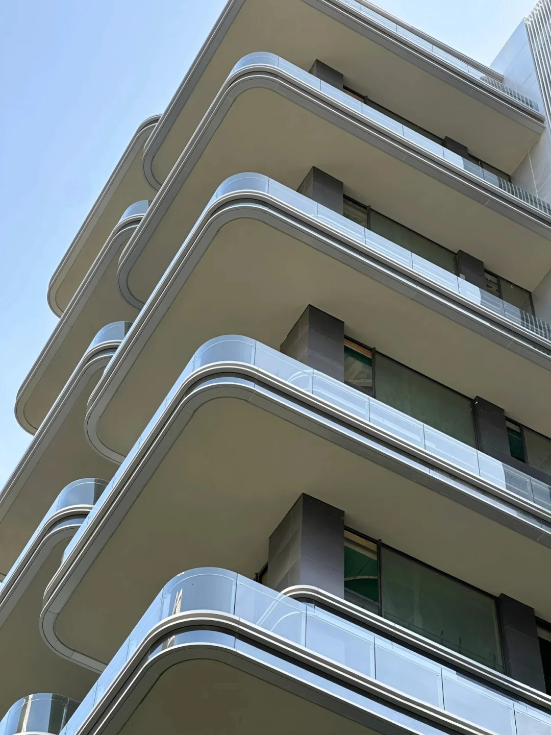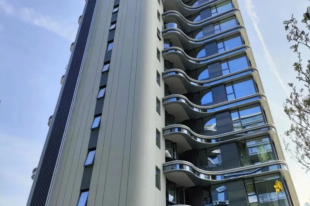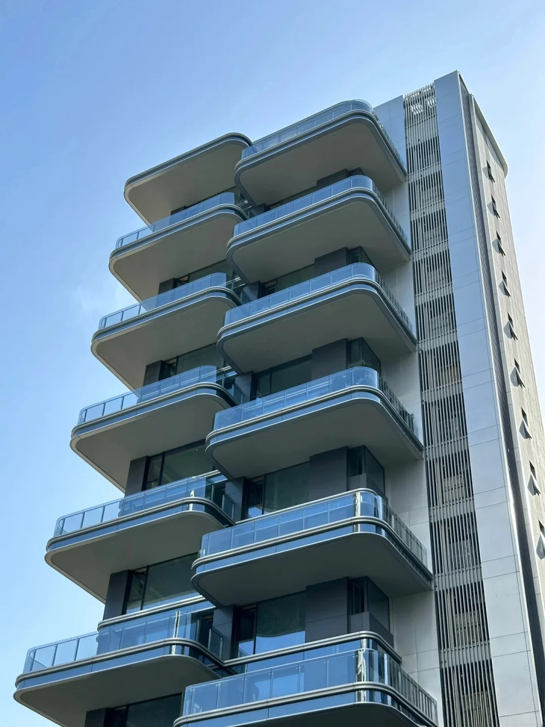 第四代住宅【错层式超大阳台】招商西安序 此类产品自来就有,成都天鹅湖花园、南湖国际都是先例,但招商在此基础上再一次引领高端,银色铝板搭配深灰格栅让人不禁想到现在最流行的铝质手机外框,曲直大气,这也许又是一种新一代住宅的风格展现,给你足够大的阳台空间,同时又不用担心潮湿和蚊虫。 因为错层阳台可以不计入建筑面积,所以大概率不能封窗,隐私性和实用性会有所折扣,瑕不掩瑜,倒蛮期待成都谁会先推出真正的第四代。 图自 LICUI