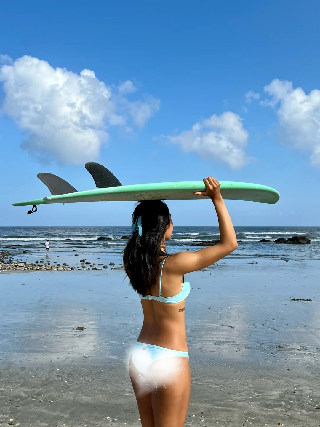 跟师姐一起穿薄荷绿色(薄荷曼波)的比基尼👙去冲浪🏄 配一脸有没有!! 一起做海里和浪上🌊最靓的仔🙋♀️!! 大家在街上遇到170cm+的女生真的会有压力吗?