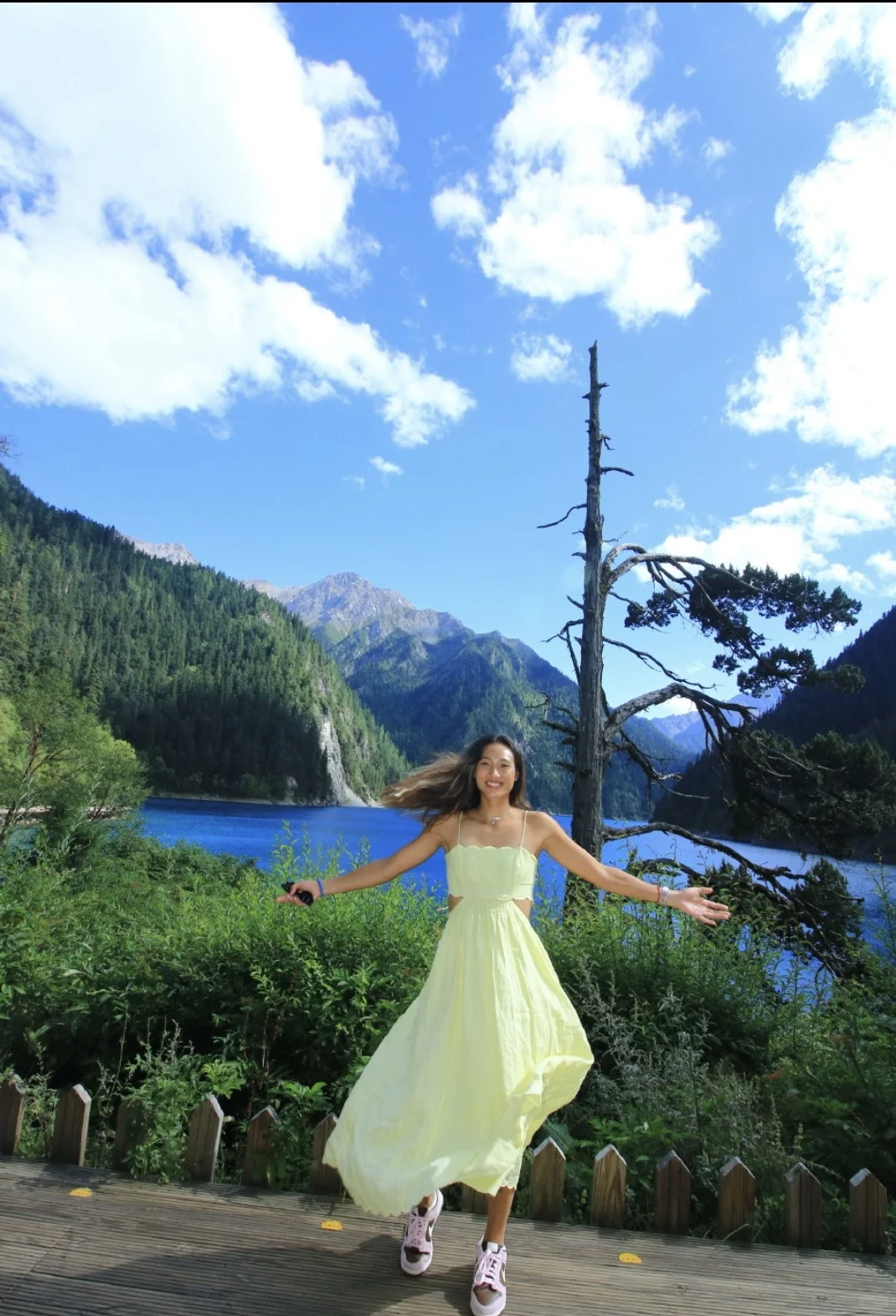 你文昨天到美丽九寨沟玩耍!风景真漂亮啊,人也变得更加美丽!