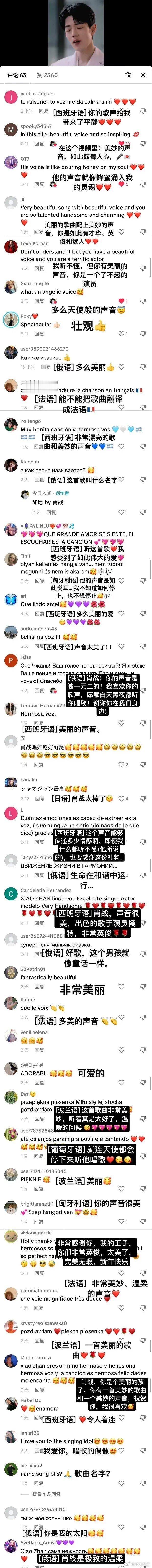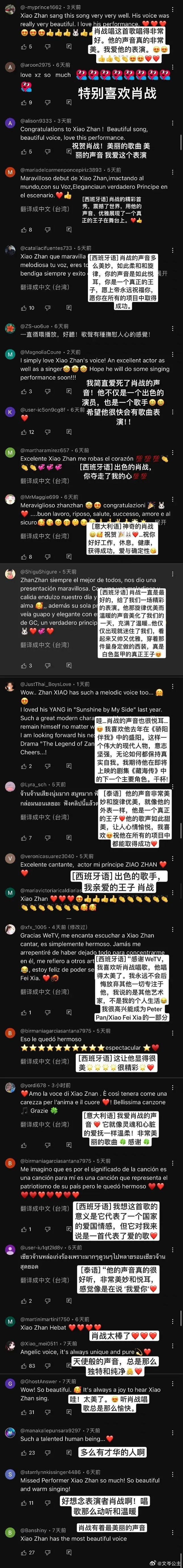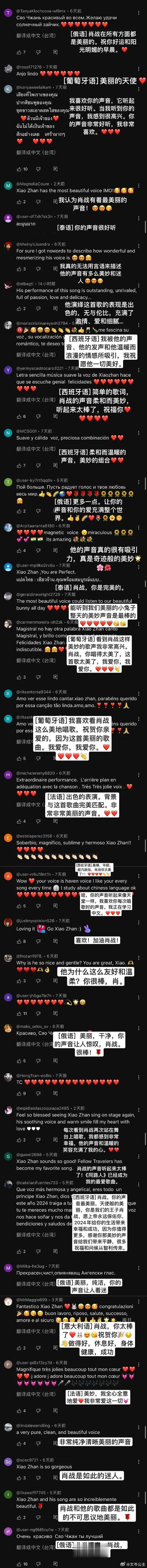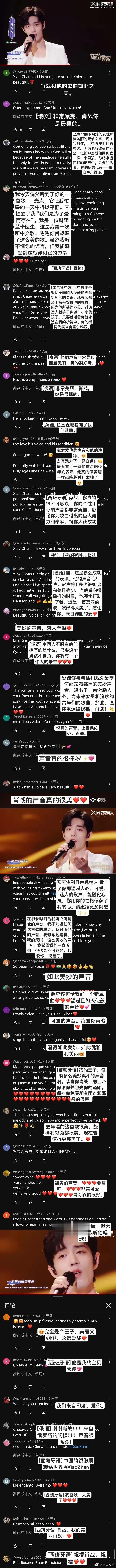 肖战在海外一直都有着超高人气。事实上作为演员的肖战虽然并未专攻唱歌,却已经有了几个在海外大大出圈的百万舞台。或许语言并不相通,但是歌声与表演一样,都是只要充满情感,就可以让人感知得到。就像《同路人》与《如愿》的评论区,那些被肖战的歌声治愈的人。像战肖战这样又低调温柔,又努力带来好作品的人,实在是我们的骄傲。