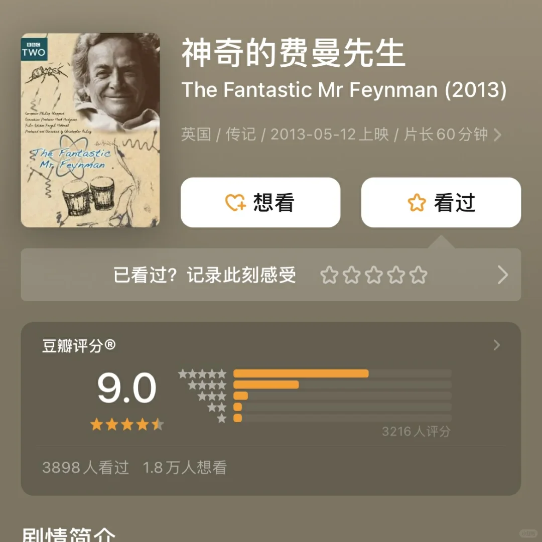 7️⃣《神奇的费曼先生》豆瓣9.0