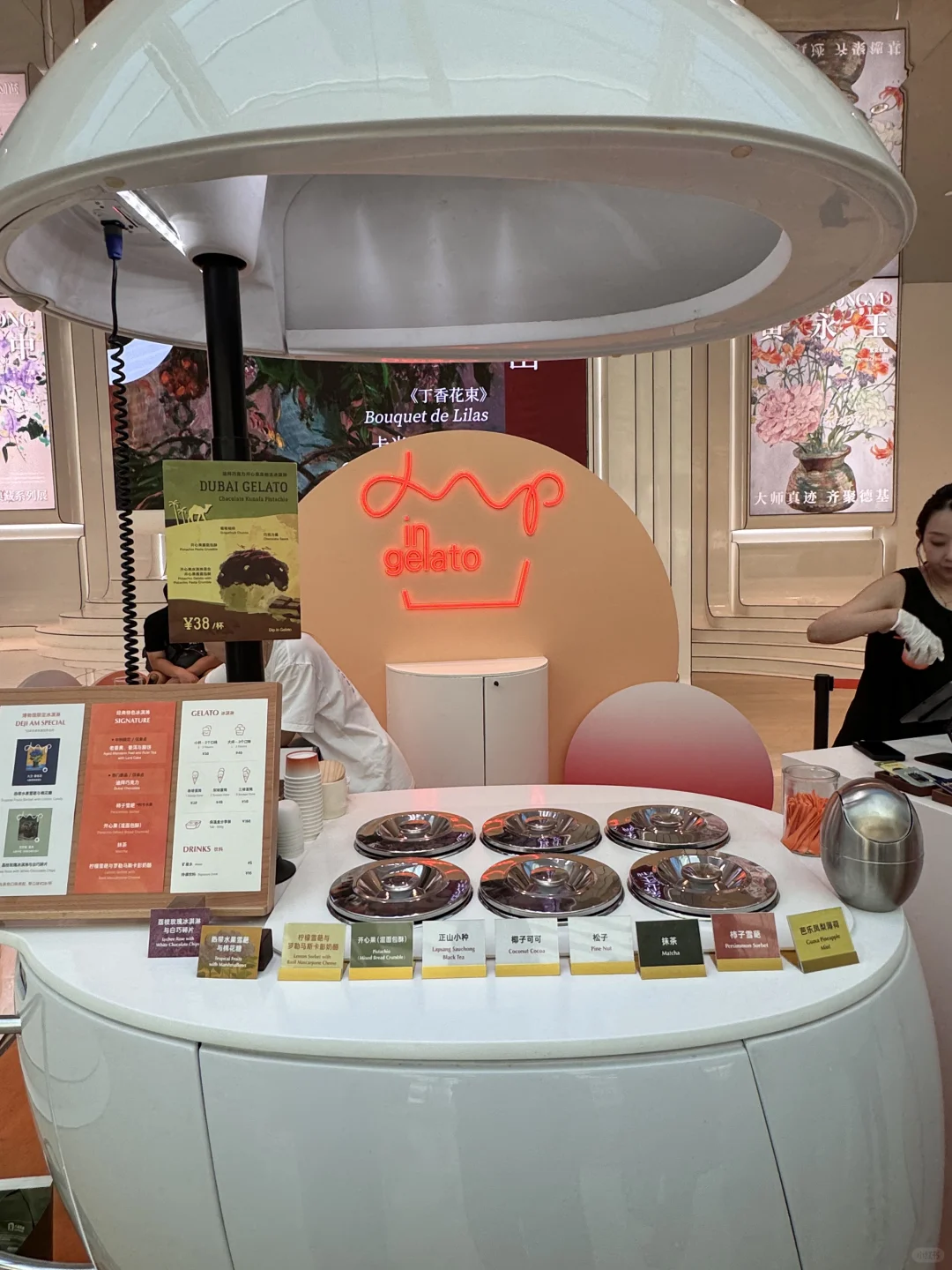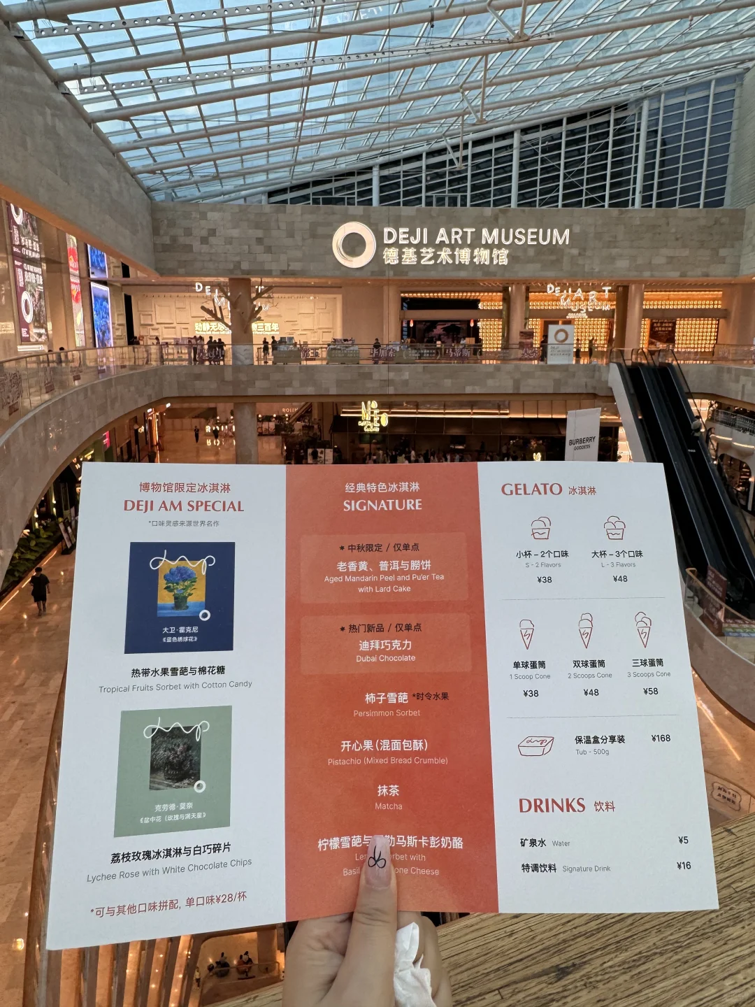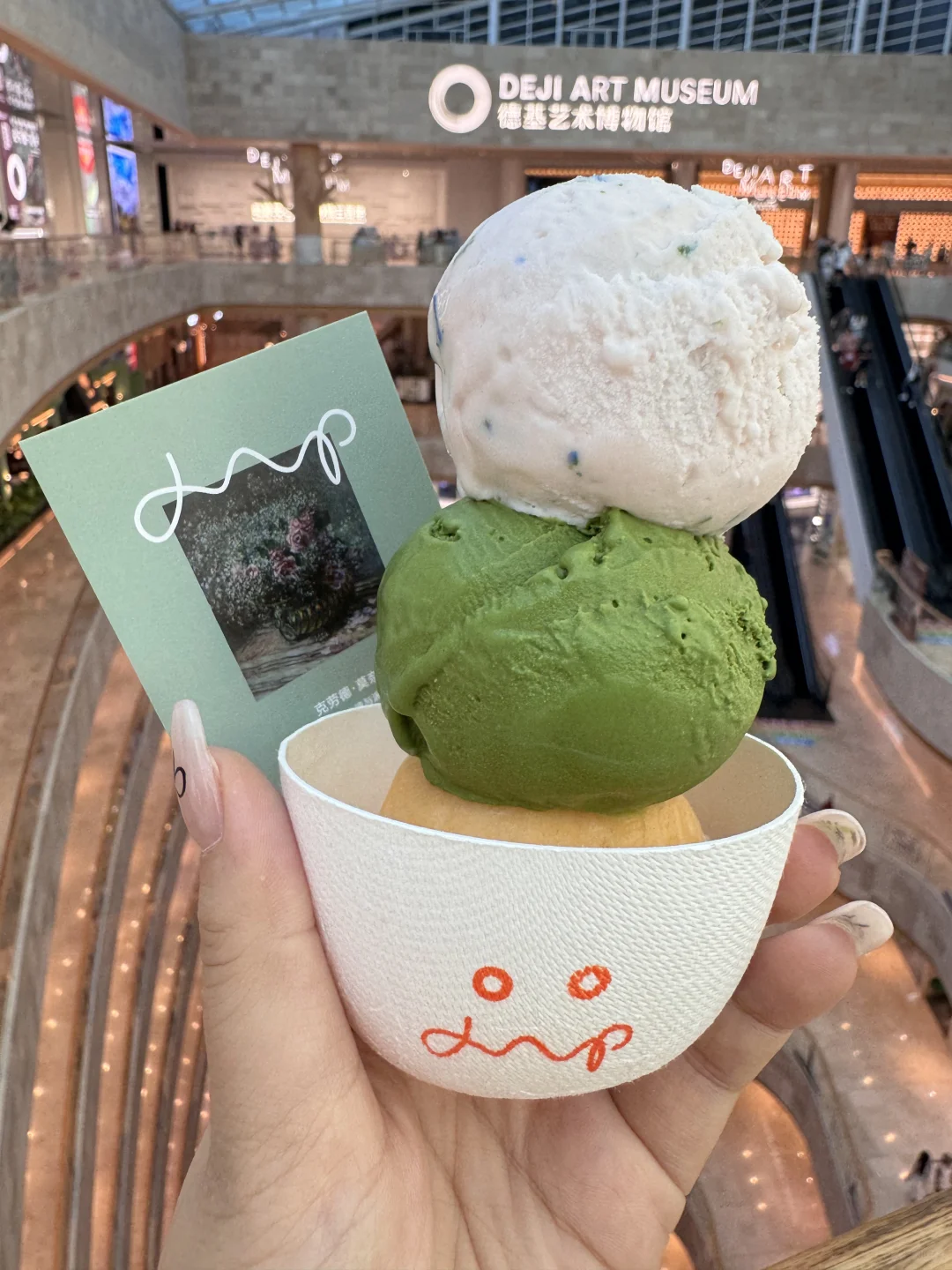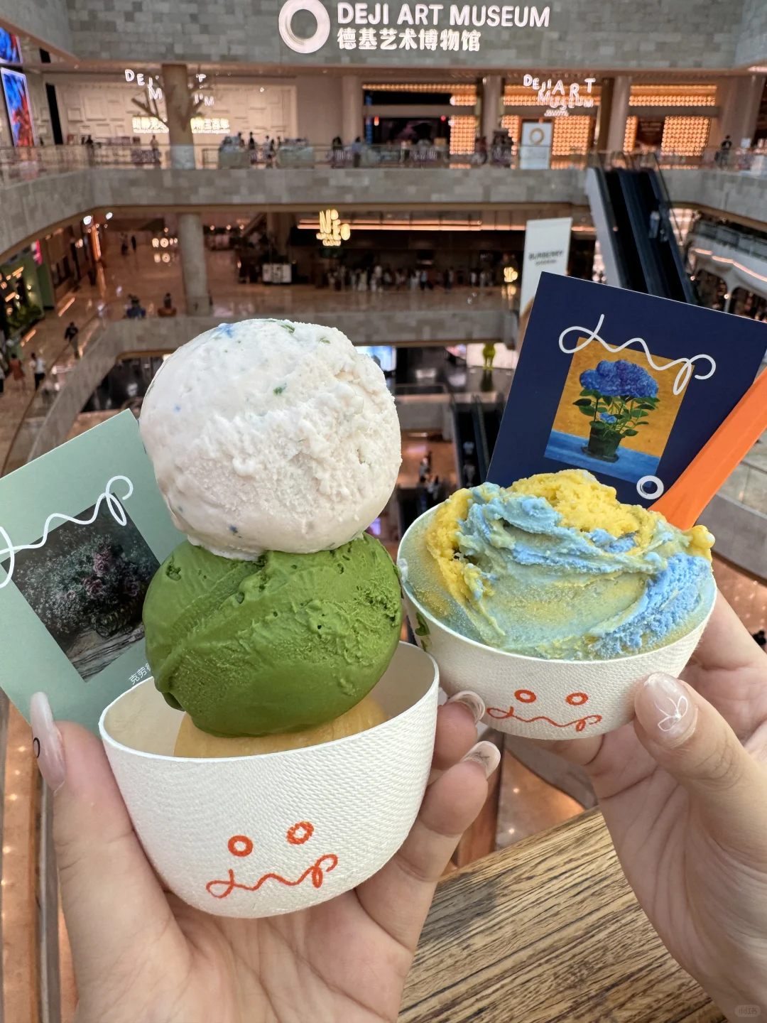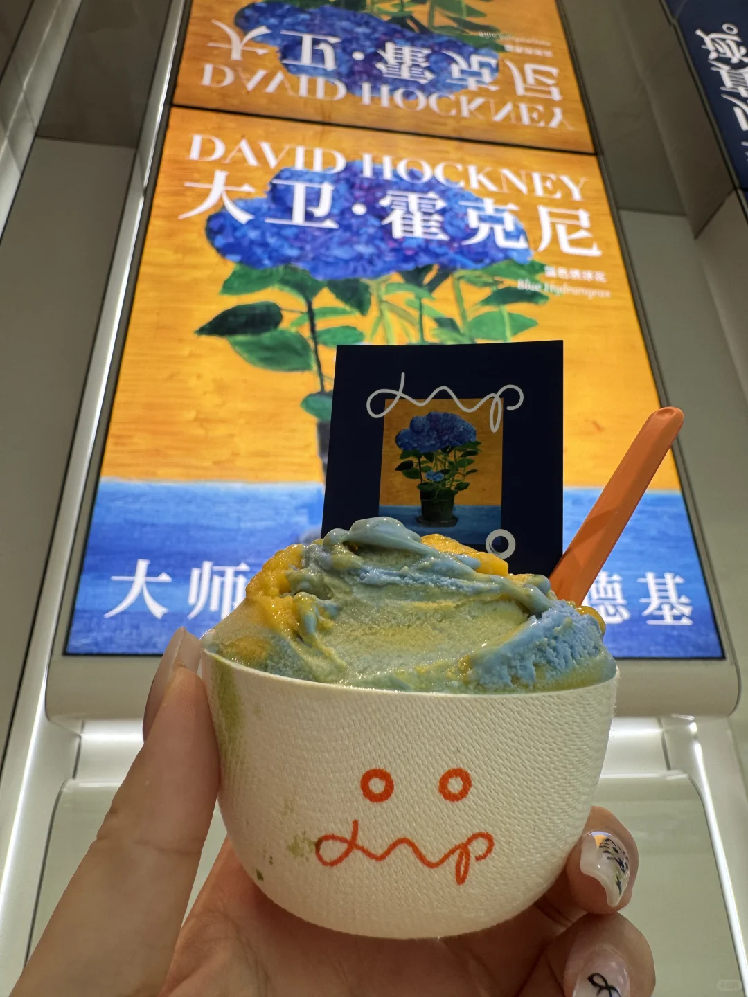 德基也有了,开在德基美术馆的gelato,gelato都和名画相关。点了大卫•霍尼克《蓝色绣球花》同款gelato,吃起来是百香果和棉花糖口味。