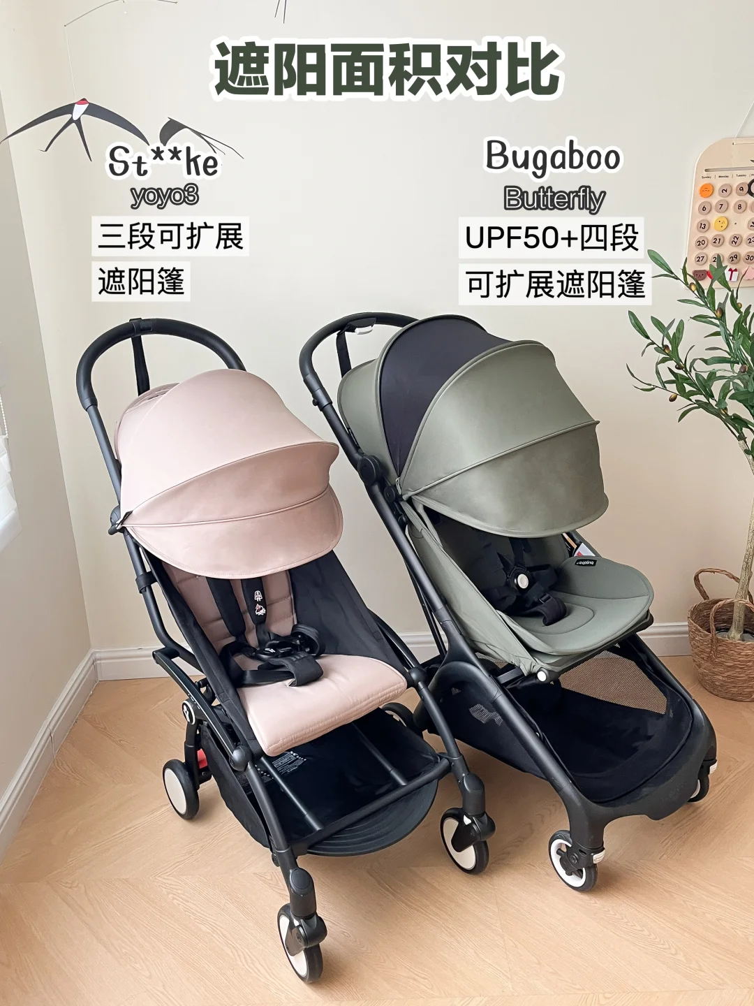 两款婴儿车各有千秋,我家用的比较多的是Bugaboo Butterfly,座椅更宽敞,大宝二宝都没问题,带娃出门收车也很方便,而且置物篮很大,逛街购物东西直接放里面,不用拎着了,宝宝坐着也很舒适,不会哭闹~