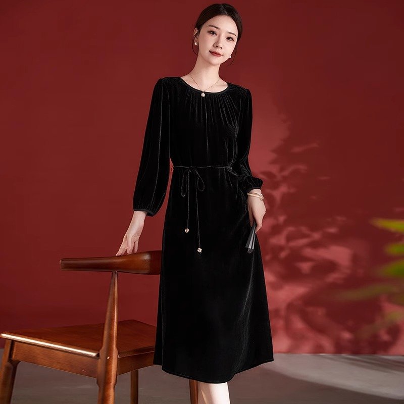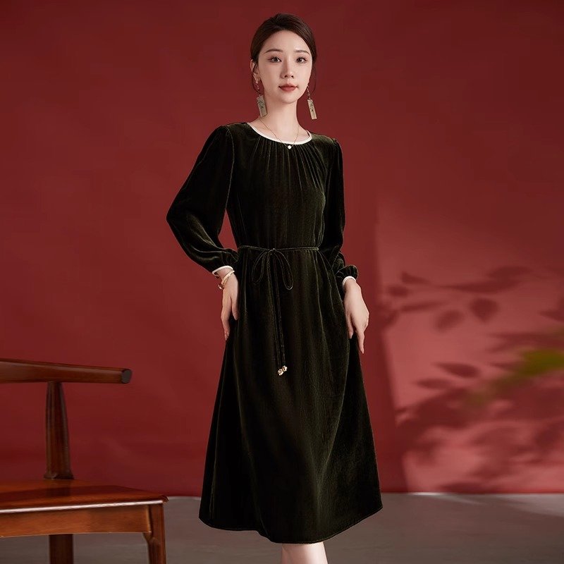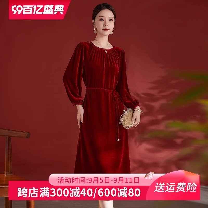 丝绒顺滑,轻盈如羽,秋日内敛奢华之选,绽放女性温婉光彩。连衣裙真丝连衣裙桑蚕丝连衣裙
