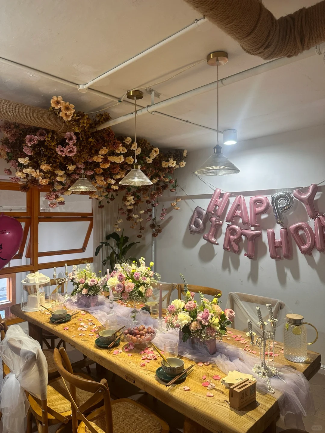 终于轮到处女宝宝过生日啦🎁果然开心就会漂亮🤩 感谢餐厅老板的布置 尊嘟太适合仙女过生日拍照啦📸重点是菜很好吃 朋友一致好评👍 蛋糕是每年都在这家定 还原度超高而且很好吃不腻[色色R] 给接下来要过生日的宝宝们一些参考呀🎡