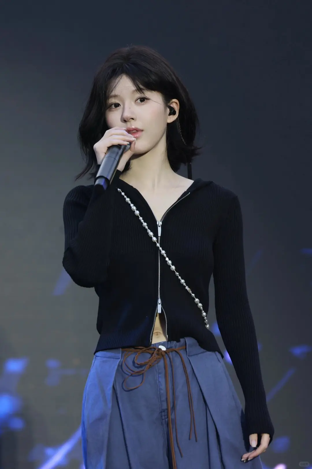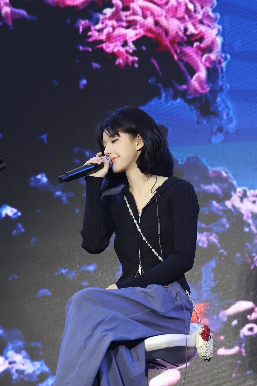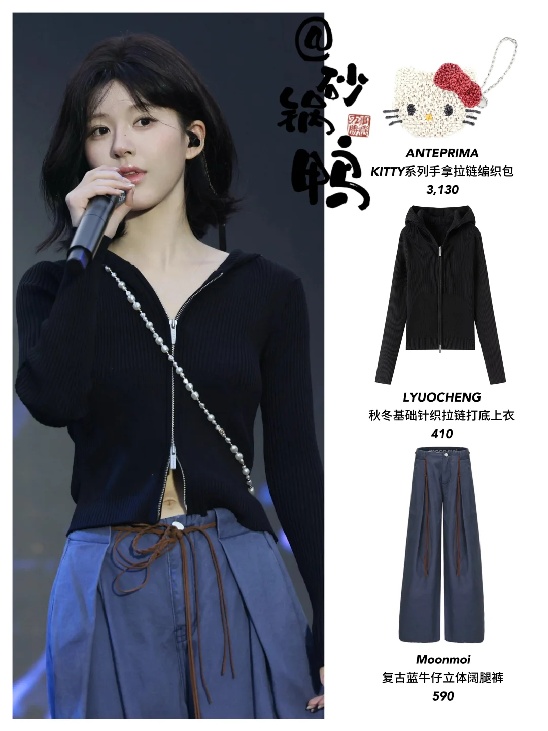 露思今晚舞台唱了英文歌,一整个反复循环播放,真的很喜欢她轻声细语里有带有力量感的调调,听着很舒服! 舞台排练这套搭配也很休闲时髦,上身LYUOCHENG的针织拉链打底上衣,下搭她常穿的Moonmoi阔腿裤,斜挎她最近都很爱背的这款kitty包~ 图源:赵露思工作室 ·
