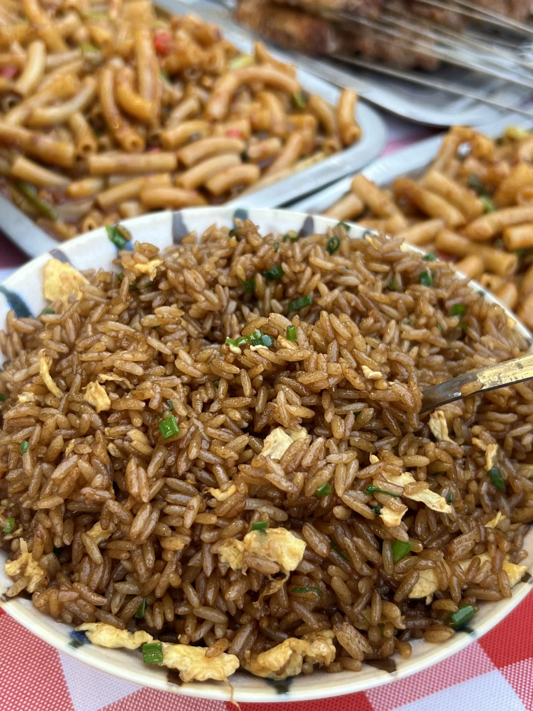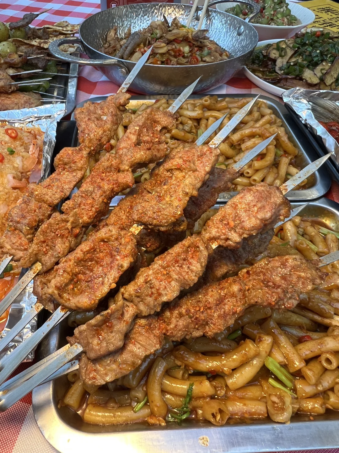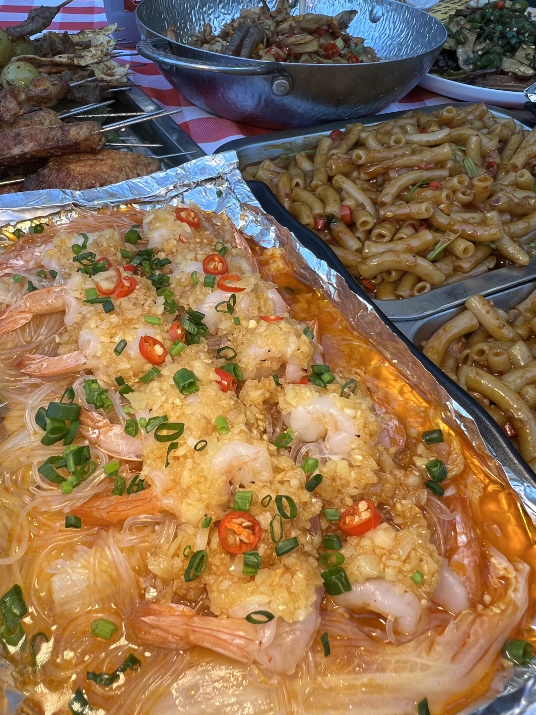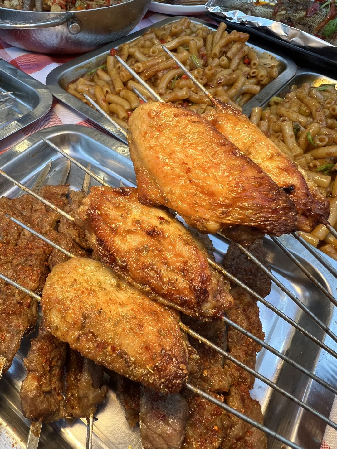 吃到了和在江西吃到一样好吃的通心粉,喜欢吃辣的一定别错过,烤串种类没那么多但随便点都好吃,我们吃了黄喉、梅花肉串、五花肉、土豆片…… 泰国香米酱油炒饭也好吃,米饭粒粒分明,配凤尾虾也好吃