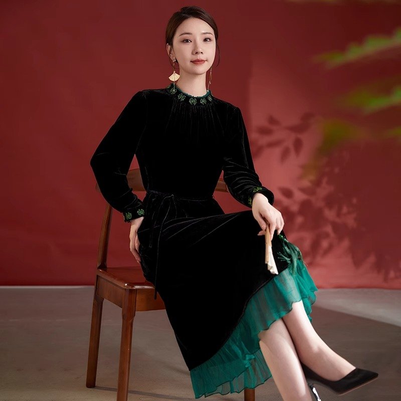 丝绒顺滑,轻盈如羽,秋日内敛奢华之选,绽放女性温婉光彩。连衣裙真丝连衣裙桑蚕丝连衣裙