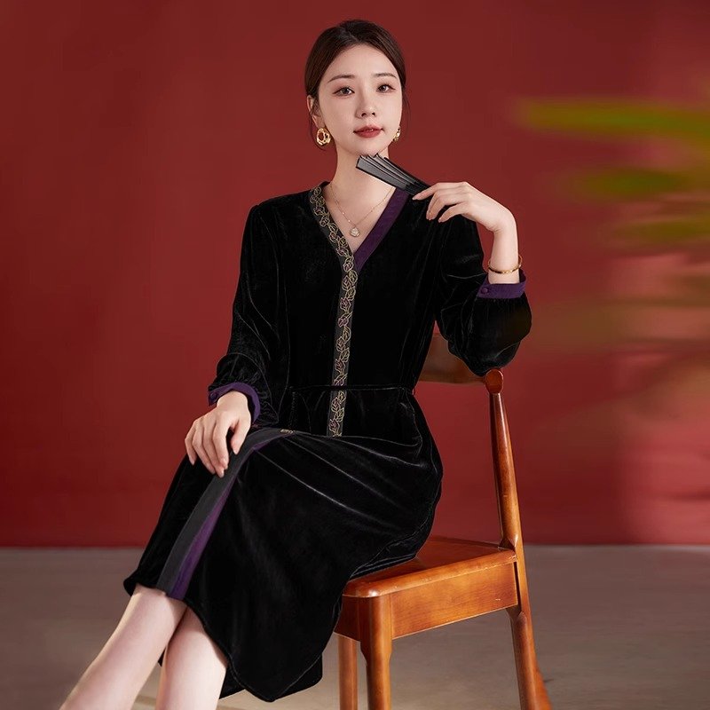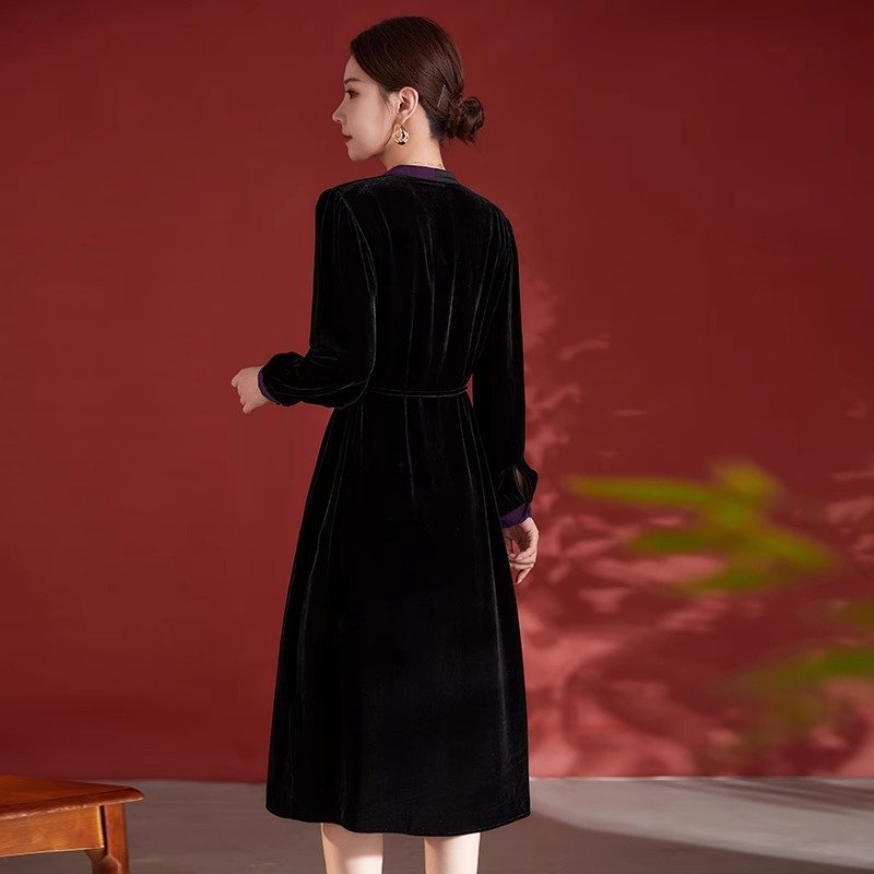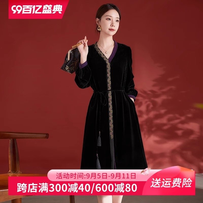 丝绒顺滑,轻盈如羽,秋日内敛奢华之选,绽放女性温婉光彩。连衣裙真丝连衣裙桑蚕丝连衣裙