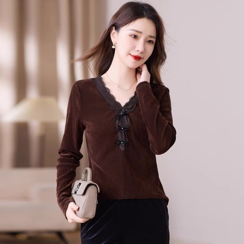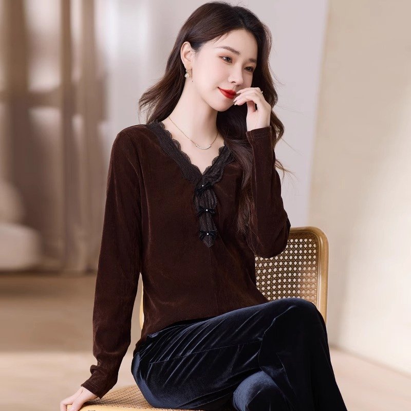 金丝绒顺滑,轻盈如羽,秋日内敛奢华之选,绽放女性温婉光彩。T恤金丝绒上衣