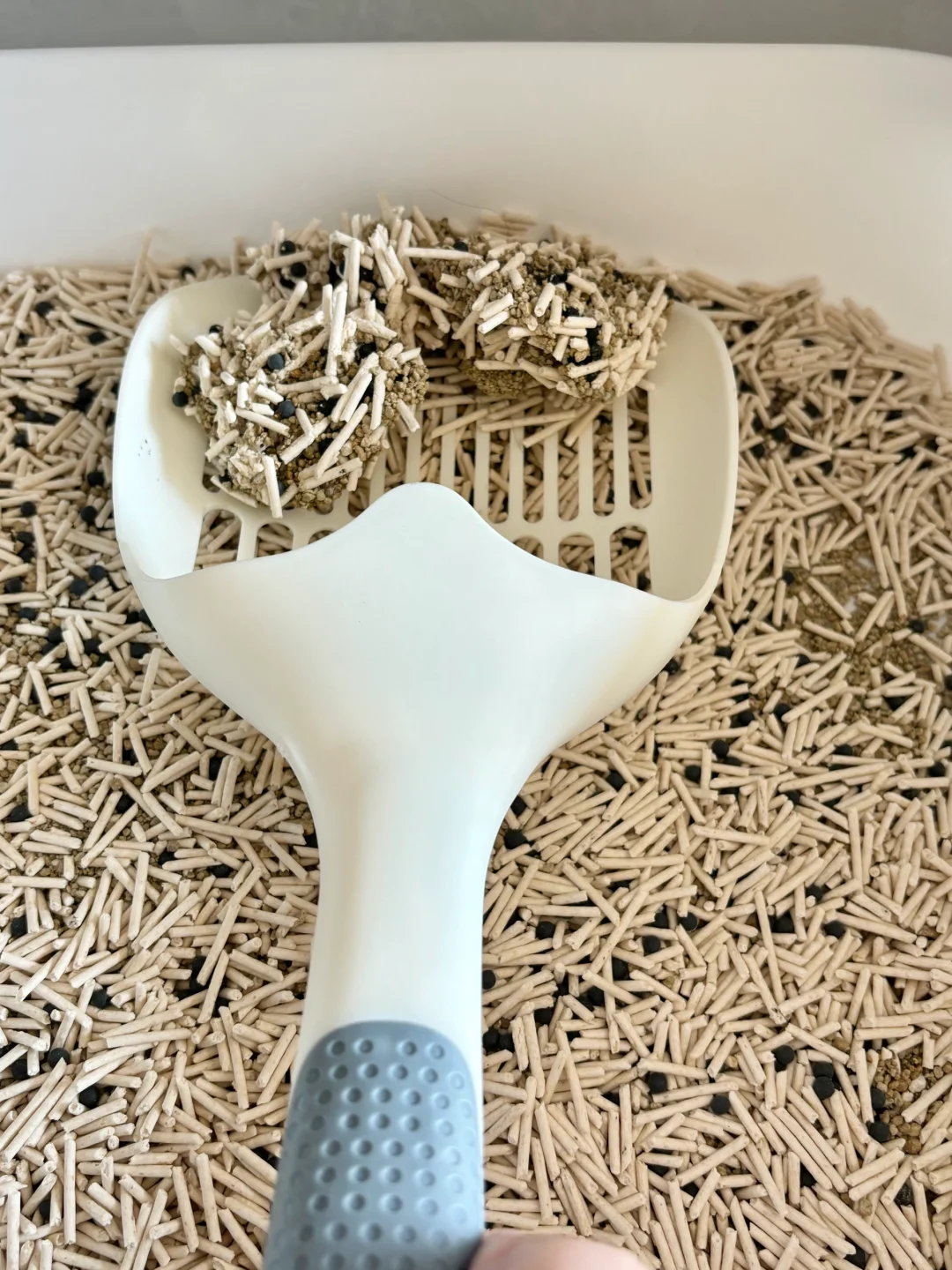 我是前些天家里猫砂用完了,正好看见美团买能送货上门,就误打误撞买了这个,结果真好用啊!!直接就不臭了,结团也杠杠硬实,一铲子下去都能铲起来,不会碎,而且很抗造,猫咪踩完它也不会碎的都是渣,不像我之前用过一个混合猫砂用几天之后盆地全是沫沫,猫咪爪子上也沾的都是,舔爪子全都吃进去了!