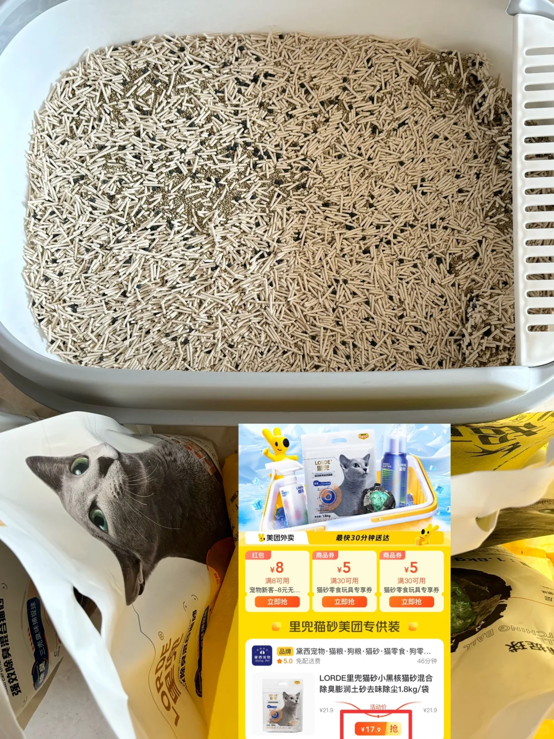 昨天刚给养猫的朋友们说完,这个里兜猫砂,便宜好用👍!在找除臭猫砂的,爱用混合砂的,或者是家里猫咪多的,都可以试试这个。
