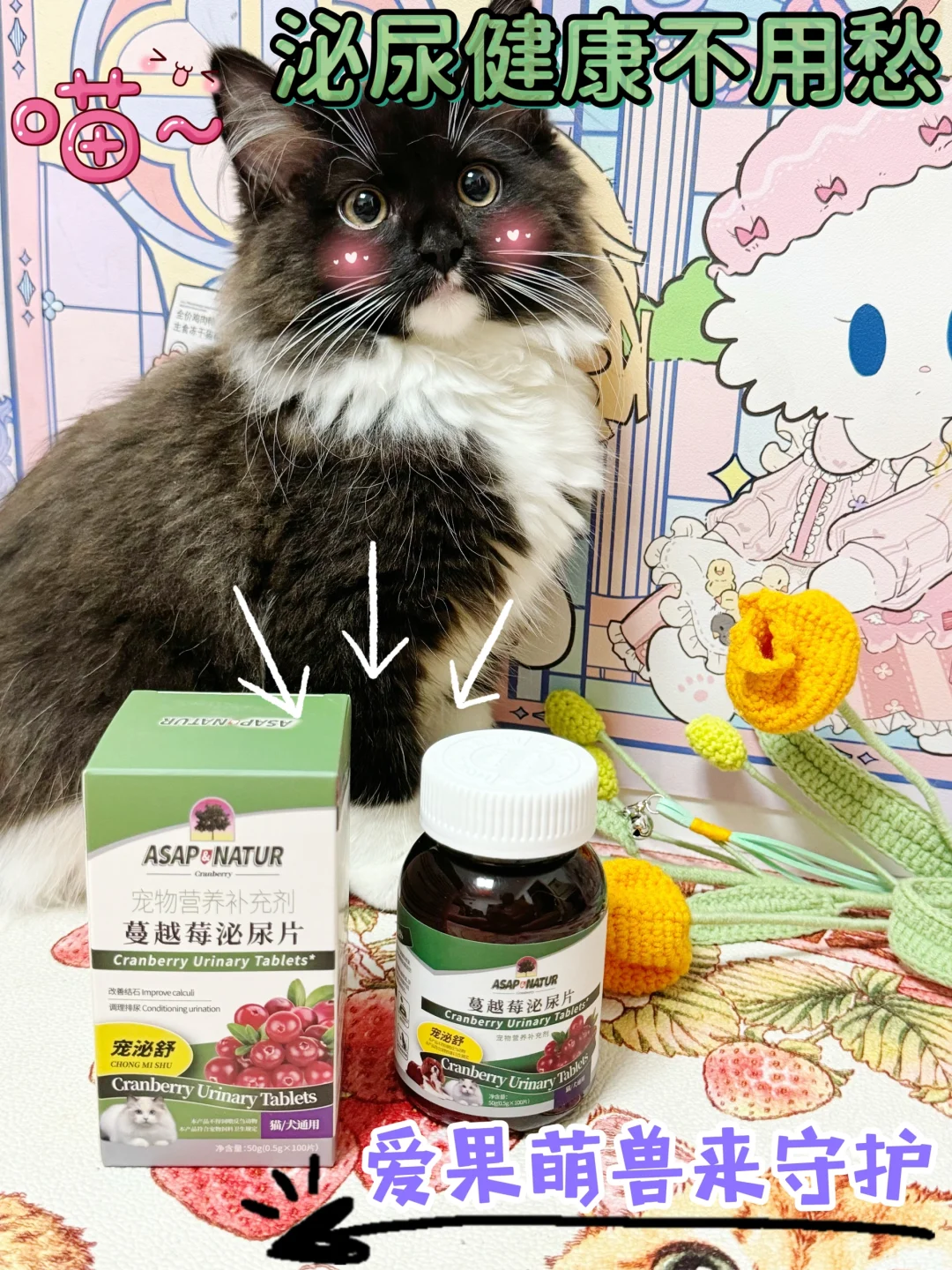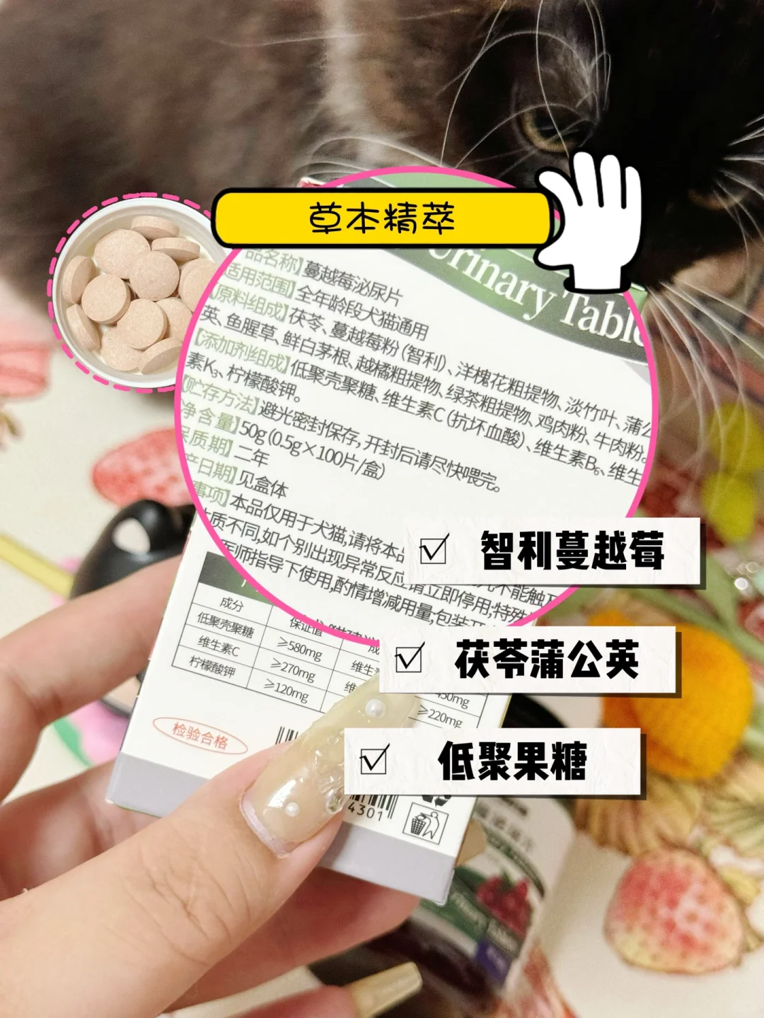 铲屎官们平时除了要监督引导猫咪多喝水之外,泌尿系统的保养也不能忽视,我选择 〽️爱果萌兽的奥萨蔓越莓泌尿片
