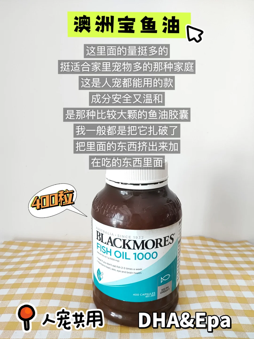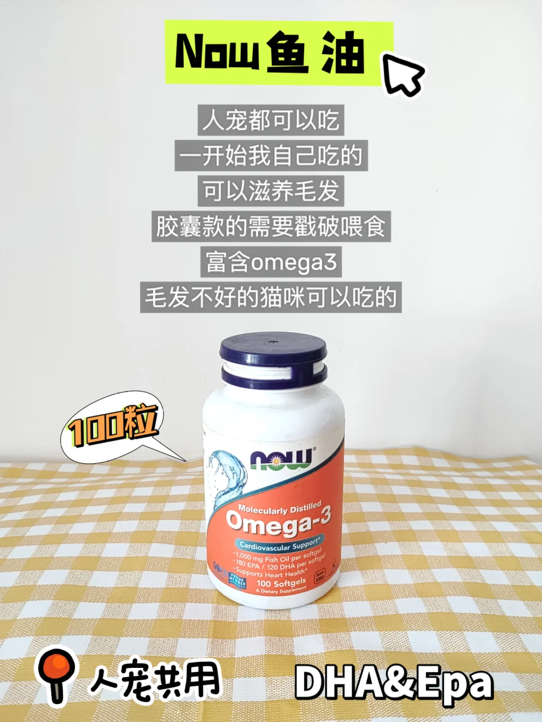 这里面的量不少呢,挺适合家里宠物多的家庭。这是人宠都能使用的款式,成分安全还温和。是那种比较大颗的鱼油胶囊,我通常都是把它扎破,把里面的东西挤出来,加到吃的东西里头。