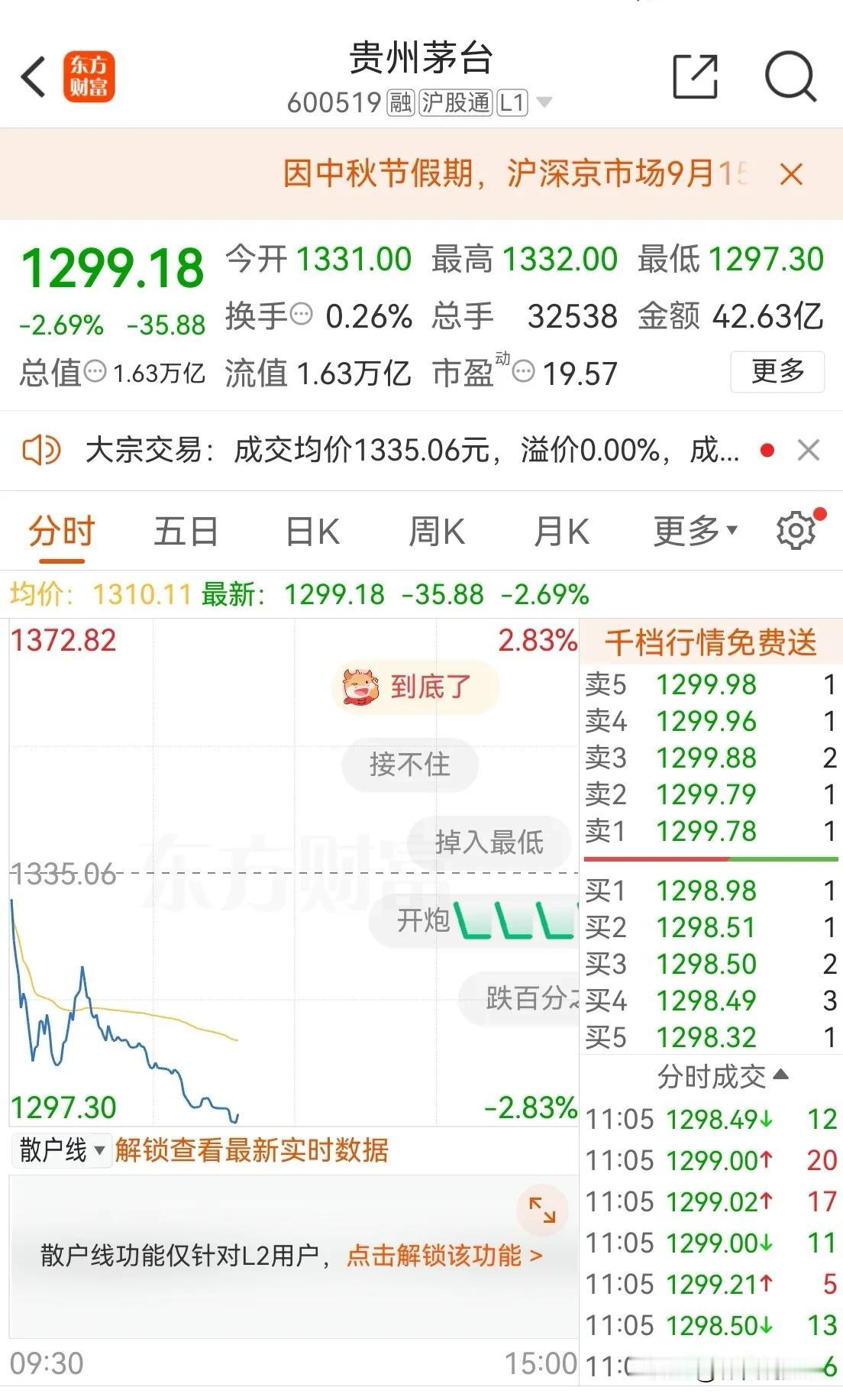 #a股# 北证50破了600点,历史新低。贵州茅台破了1300元,大小通吃。