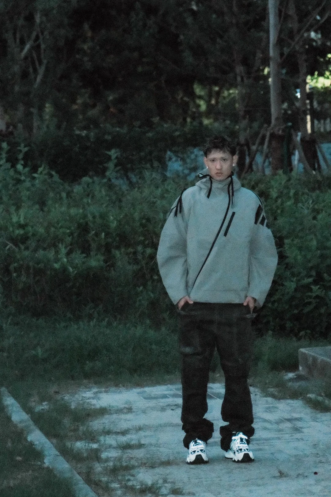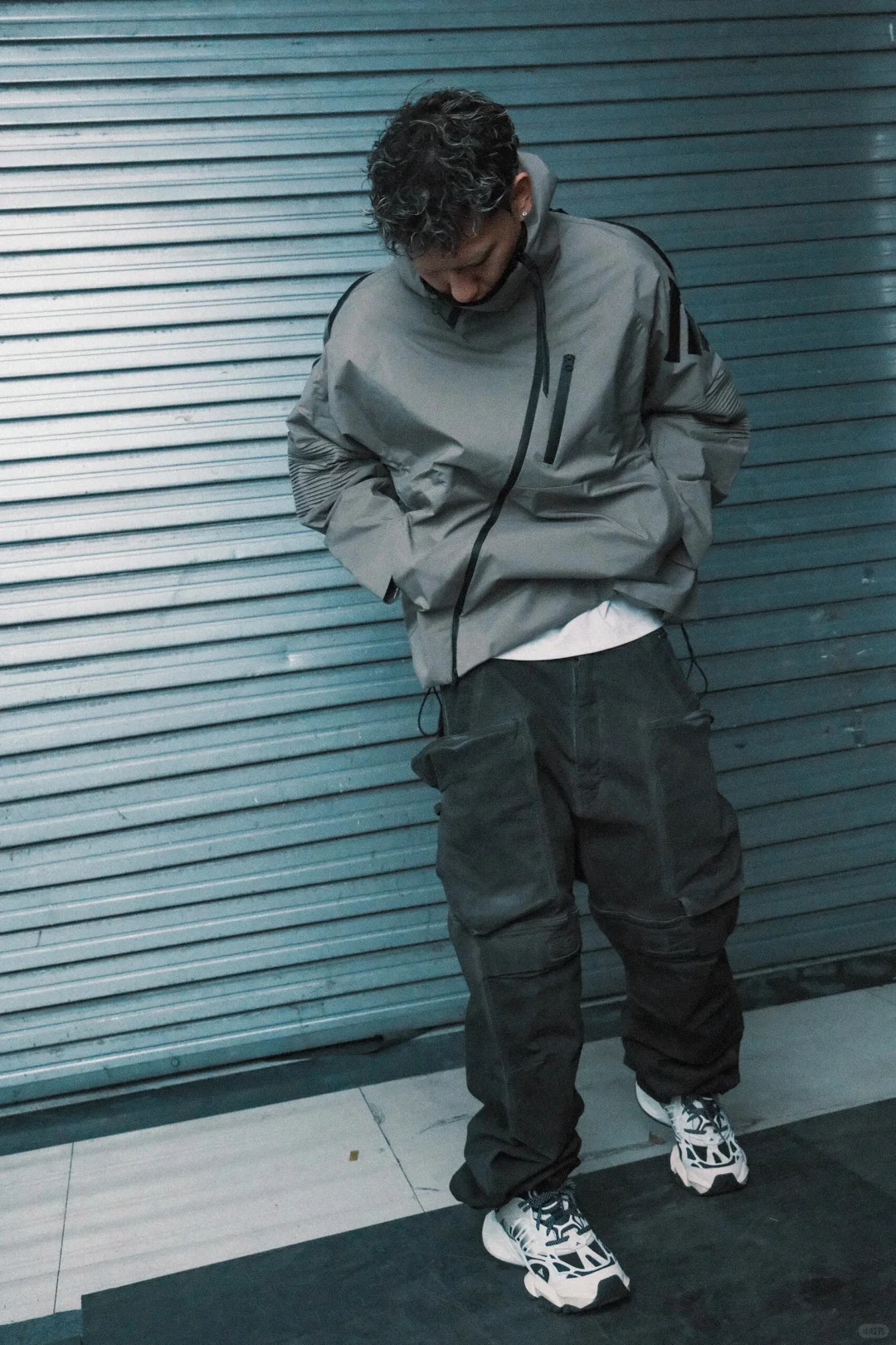 刷到rapper选手GALI的一组街头穿搭图 低饱和的配色好Cool! 上身全新 FUTURE OF STYLE 「先锋运动」系列,立体领口廓形搭配隐藏口袋,独特拉链设计碰撞可调节下摆夹克,下搭一条Rick Owens 的褪色有机棉黑色工装裤,上脚超宽廓形XLG轻机甲鞋,演绎不一样的机能风美学! 图源:GALI