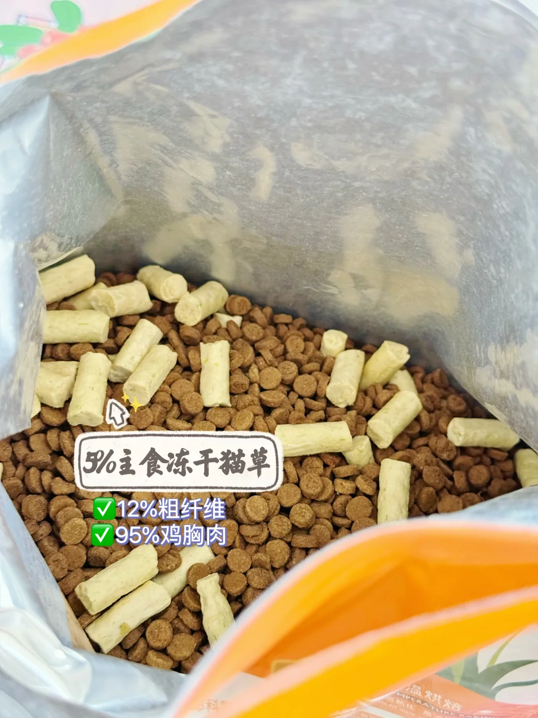 烘焙猫粮里面➕那么多冻干这不是不用在单独买冻干啦哈哈哈哈。