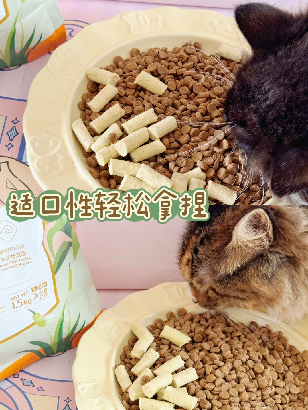 ⚜️42%粗蛋白,添加5%主食冻干猫草和百亿益生菌,排毛护肠好消化
