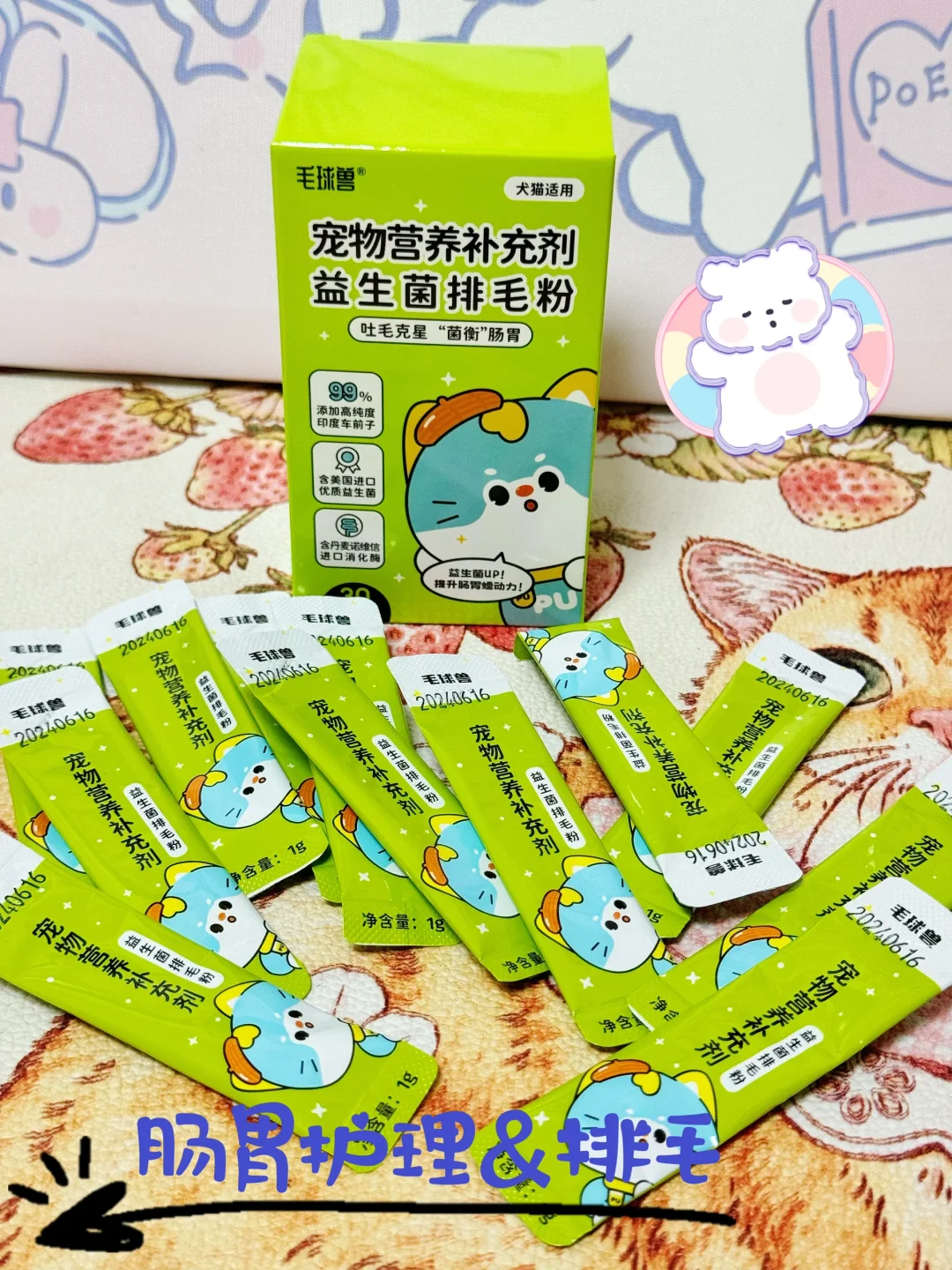几度纠结下选择了毛球兽益生菌排毛粉,它是经过华南农业大学改良升级的第四代排毛产品