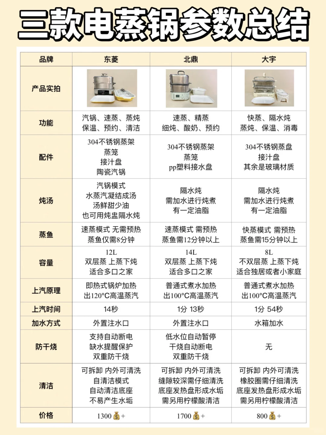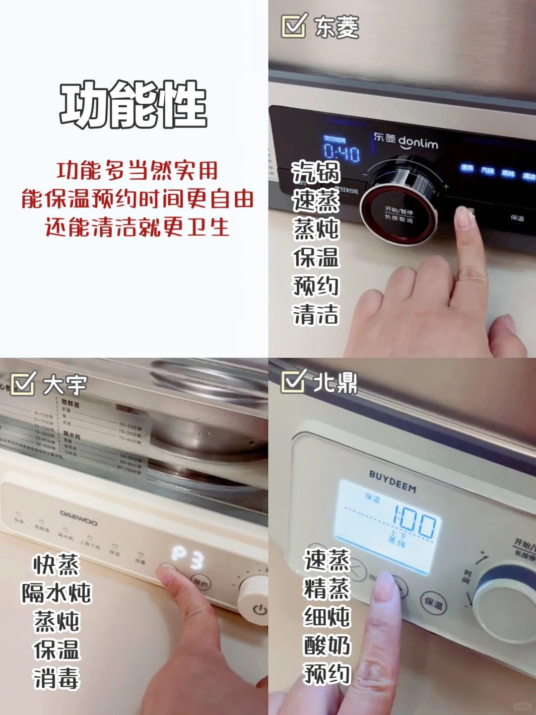 大宇:快蒸、隔水炖、保温、消毒、预约