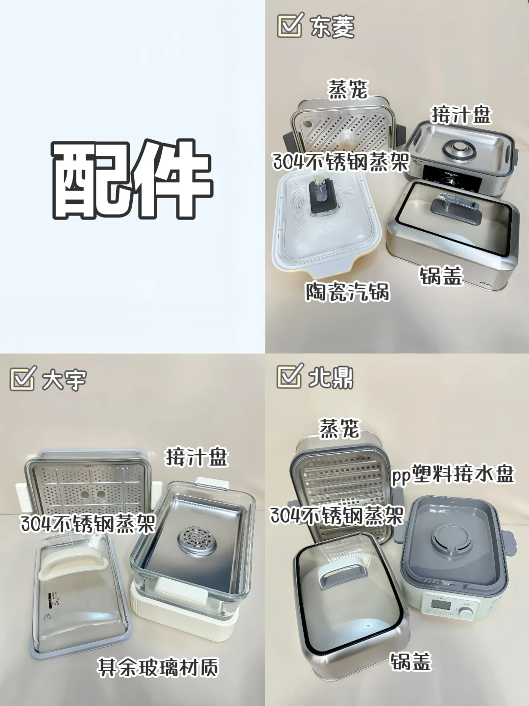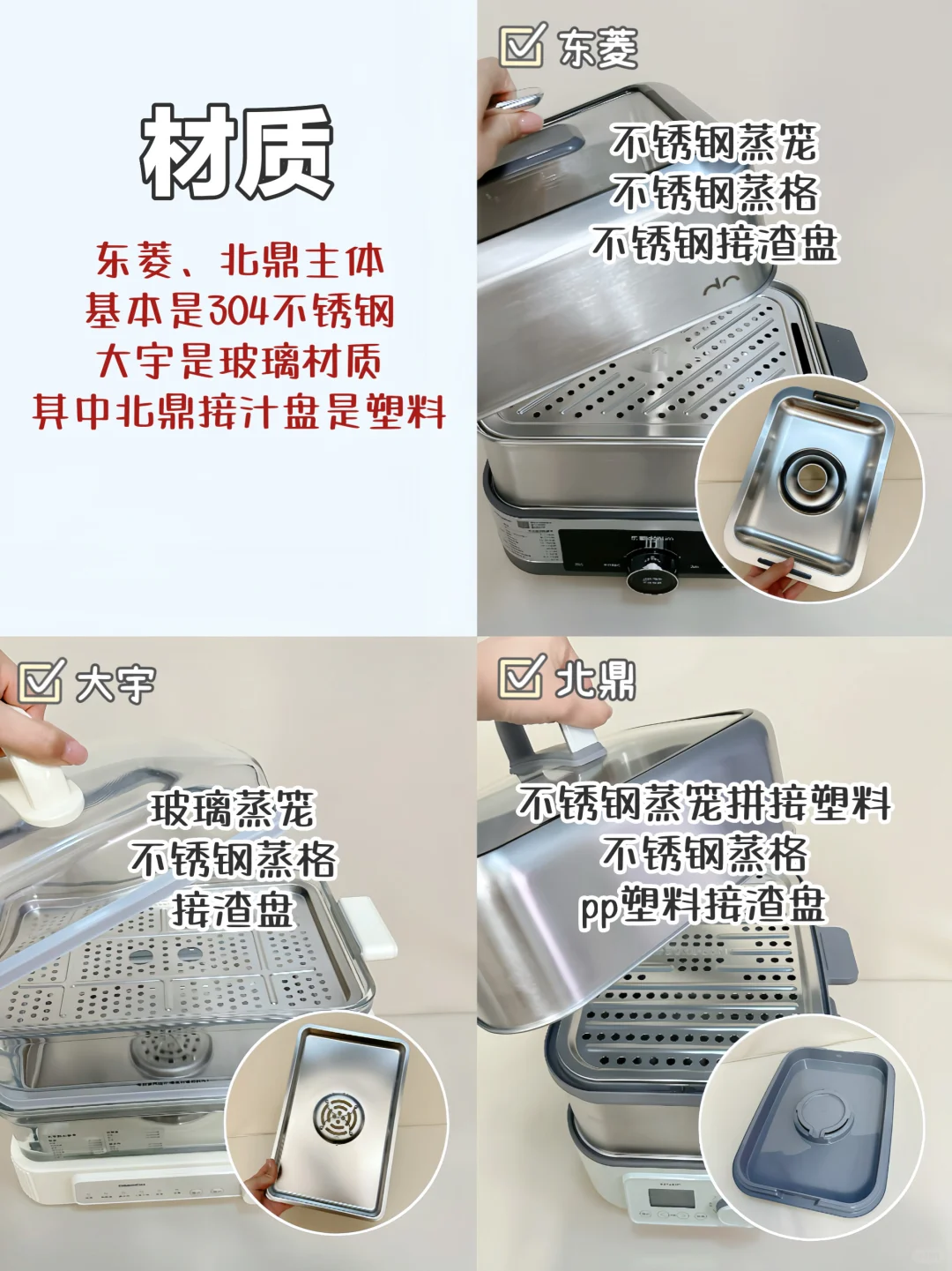 大宇:304不锈钢蒸盘、接汁盘,其余是玻璃材质