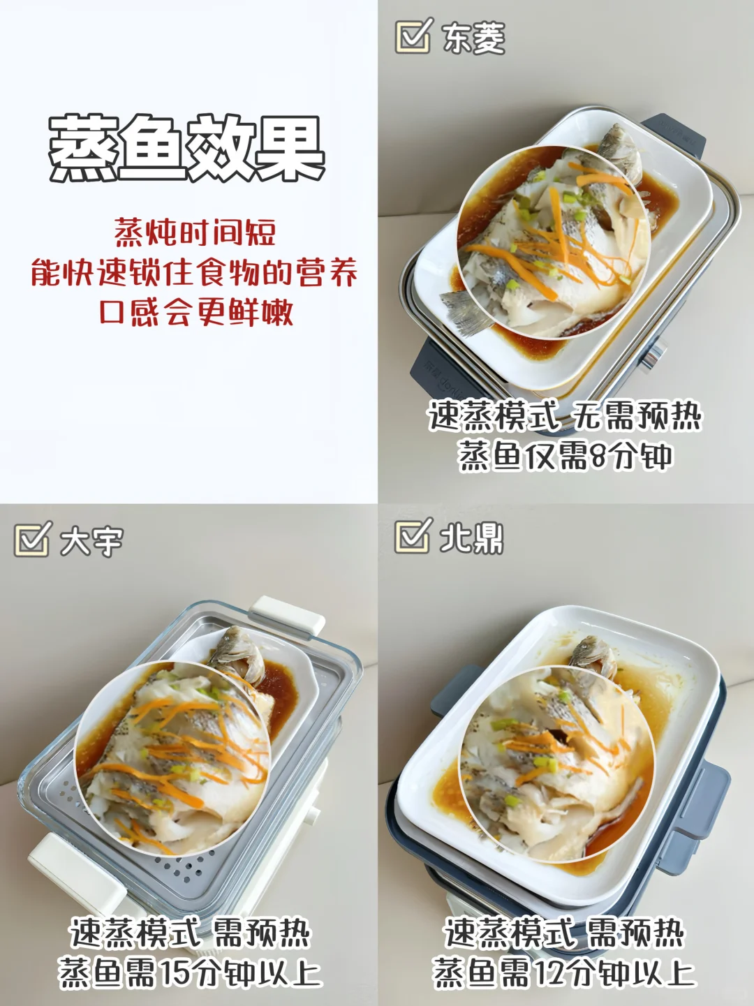 北鼎:速蒸模式、需预热,蒸鱼需12分钟以上