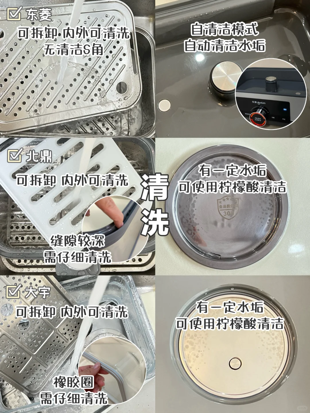 北鼎、大宇:有较深缝隙或橡胶圈需仔细清洗,底座水垢需拿柠檬酸清洁