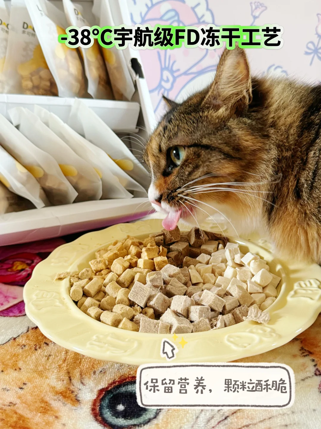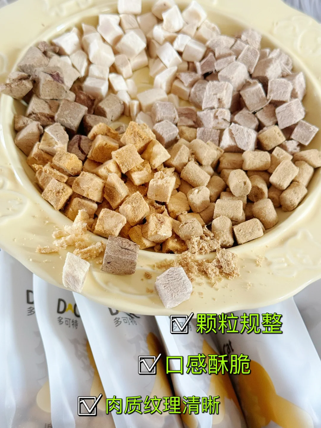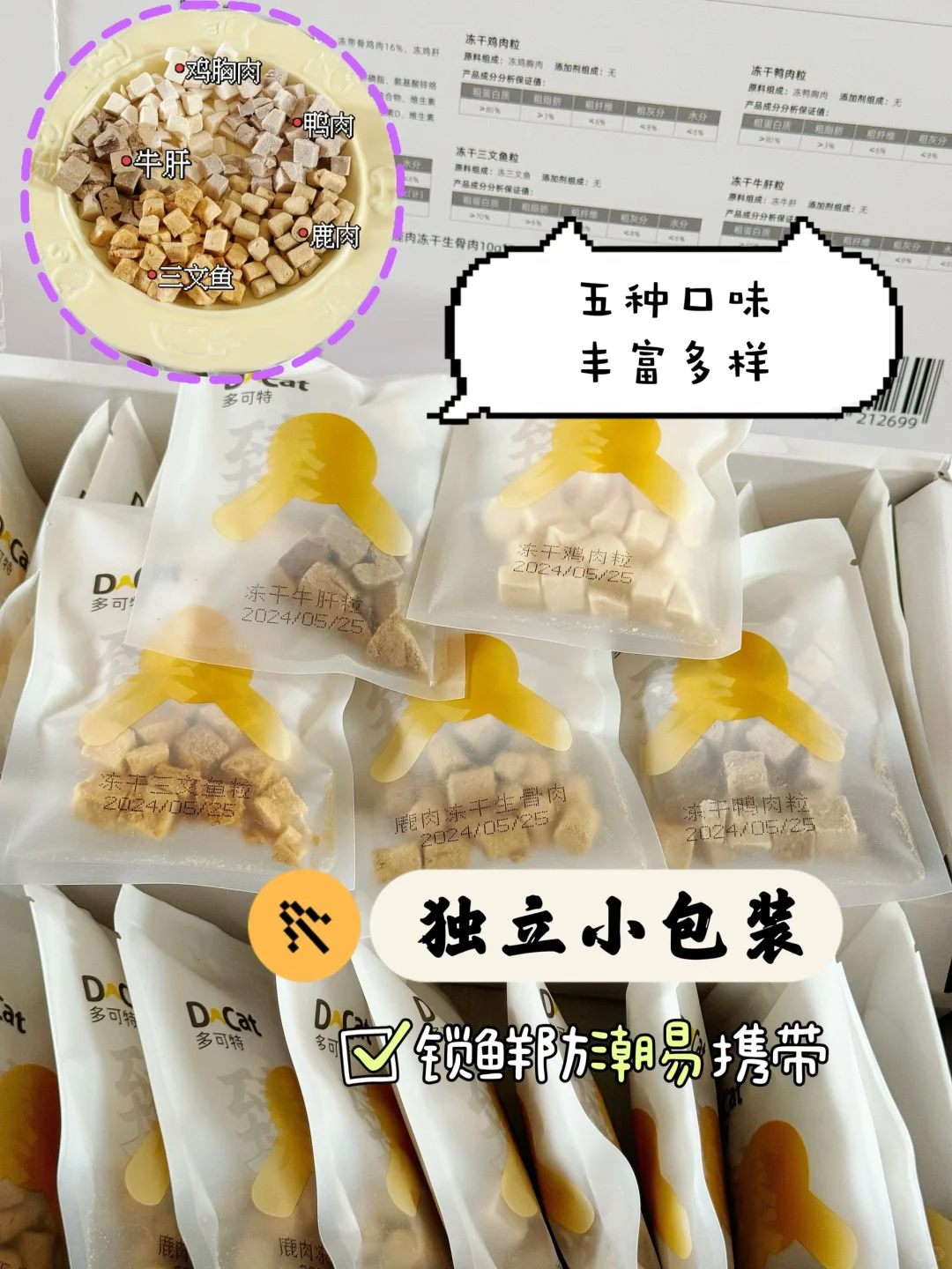 收到快递的那一刻真的被惊到了,没想到多可特每日冻干这么大一盒,3个月的葡萄在旁边就像个“挂件”似的哈哈哈哈哈哈哈 包装我真的好爱,颜值嘎嘎高诶!PA独立锁鲜包袋,防潮易携带,10g/包,一顿一包刚刚好 鸡鸭牛鹿三文鱼五种肉源,营养丰富,口味多样,挑嘴小猫也能轻松拿捏 采用-38°C宇航级FD冻干工艺,保留食材营养和风味,口感酥脆,适口性UP⬆️ 主食级别的营养摄入,太适合葡萄啦~
