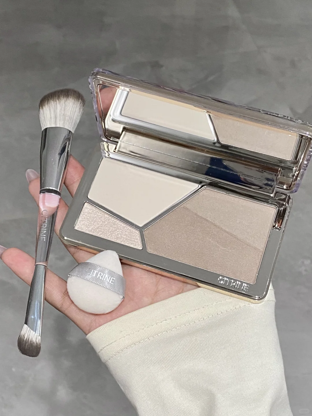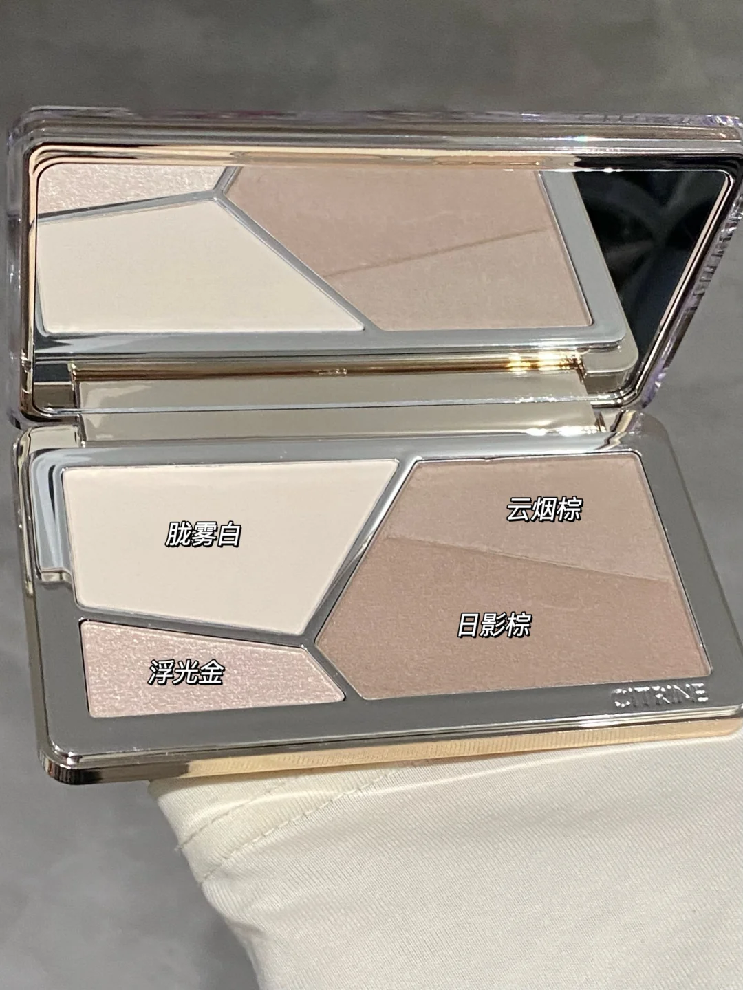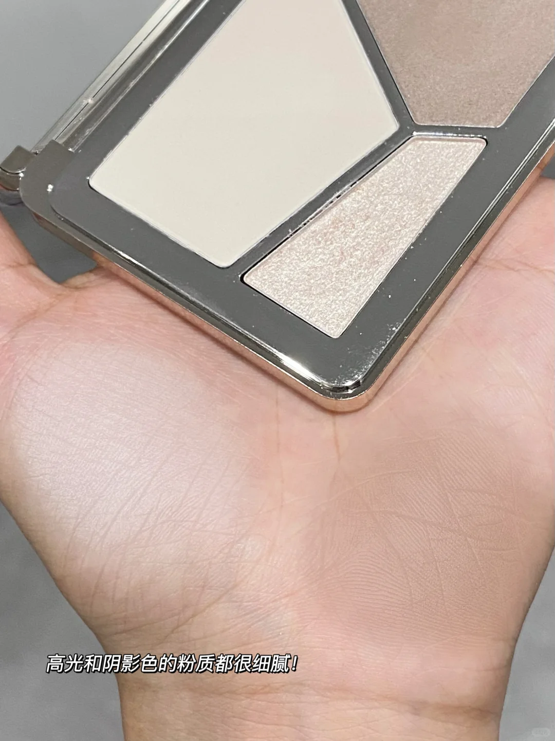 春汀你也是卷到修容上了! 新品修容的盘面分割是有大师指点吗 也太恰到好处了叭!! 大脸盘子kuku用的阴影色和哑光高光色最大 香槟金珠光小小点缀一下 而且这个调色不就是亚洲人脸上在自然光下会产生的阴影色嘛 你算是吧脸蛋子研究明白了 粉质也很不错 摸起来巨丝滑 上脸也很好晕染 而且不会突兀 融肤度很高! 搭配刷子和粉扑官配cp 徒手捏脸不是梦! 新手也不容易出错