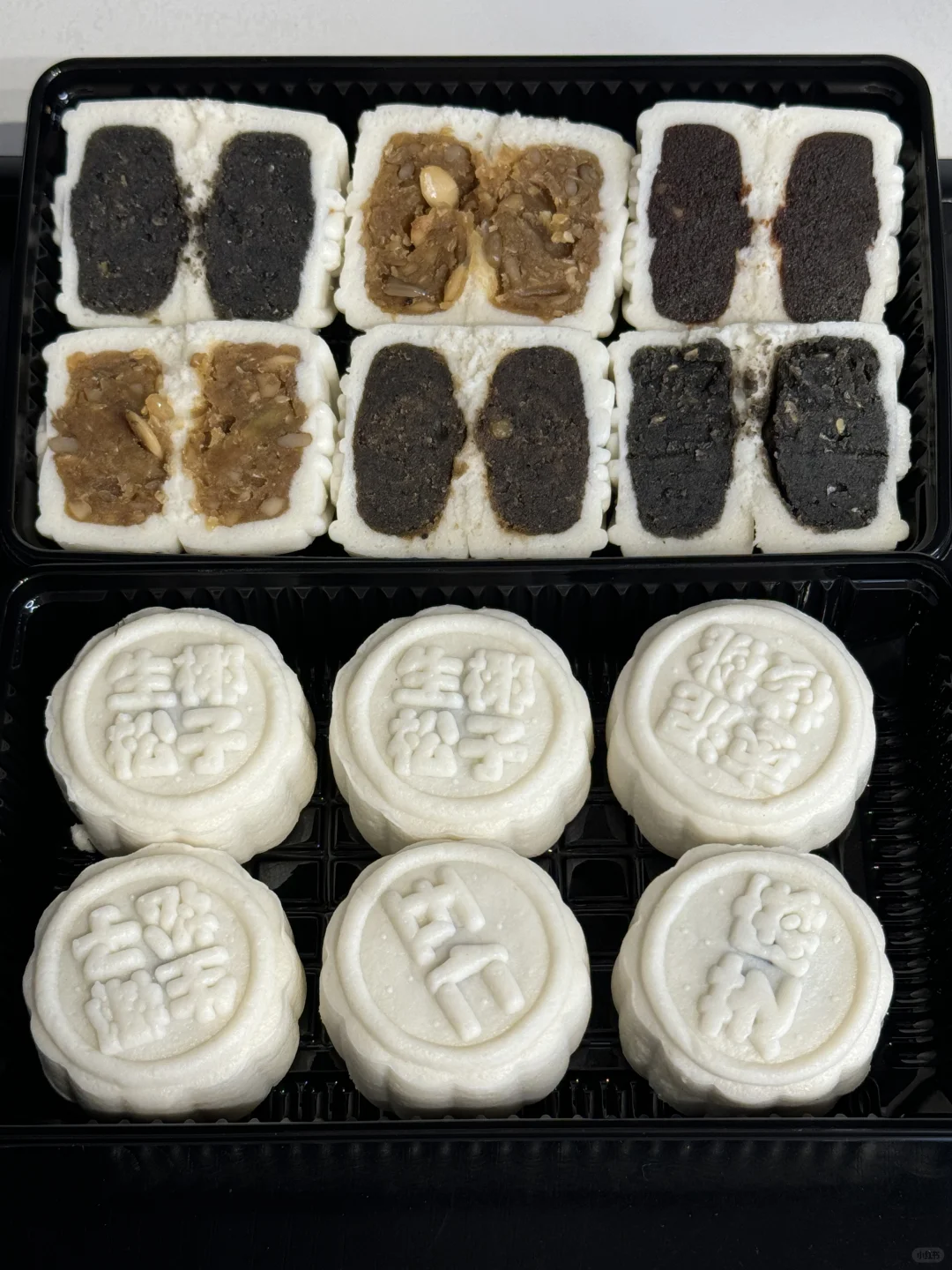 看到口味十分有创意就多买了几盒有海盐生椰拿铁松仁、枣泥核桃、咸五仁、黑麻椒盐…每一个口味的馅料都好足 外皮米香浓郁 吃起来不腻 有种糯叽叽的感觉☝🏻 强推咸五仁还有黑麻椒盐的 越吃越好吃