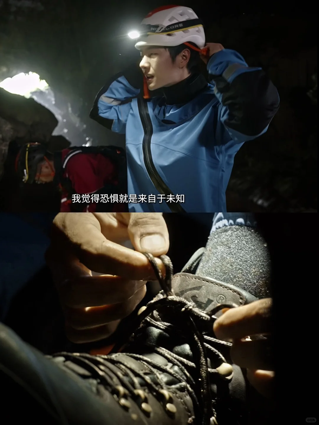 王一博「探索新境」第三站——广西探洞之旅! 走进这片神秘的地底迷宫,更多的是未知的黑暗与恐惧,一博都一一克服了,太有种了! 这期装备已附上!! 没想到在洞穴里吃起了螺蛳粉😂上脚这双斯立德高帮靴从雪山攀岩穿到了徒步探洞,这次也是顺脚多了! 图源:探索新境