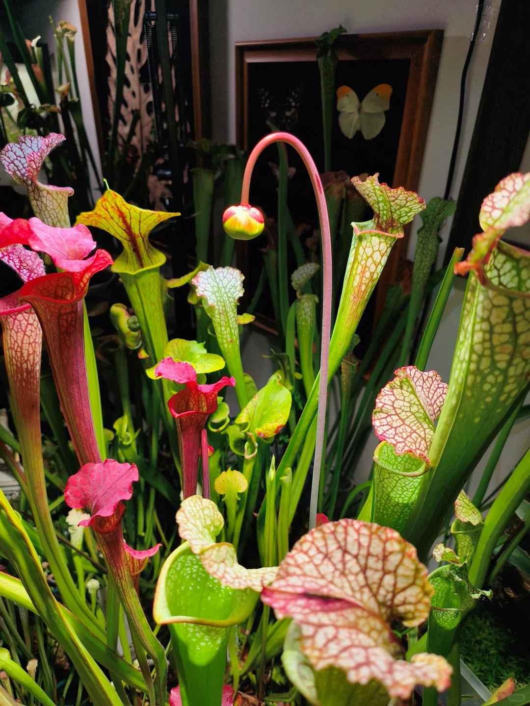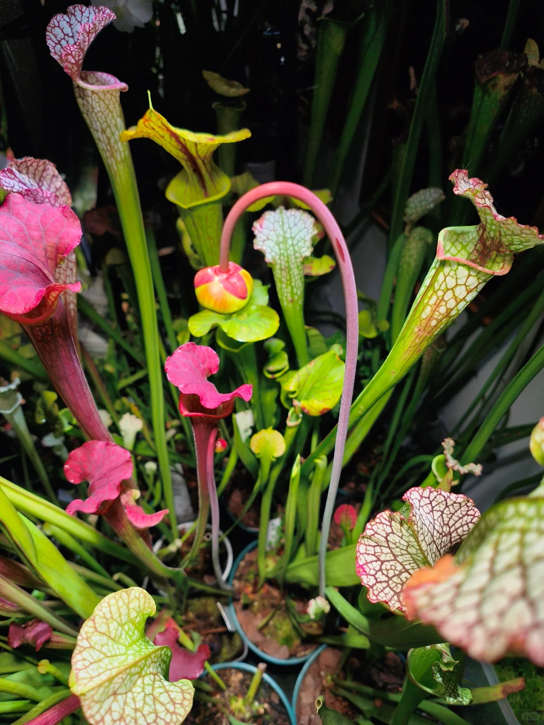 一共有三朵,开花的是白骑士op06子代和红白,虽然现在不是开花的好时候,开花会消耗瓶子草大量养分,群友们的建议是嘎掉,但是我没见过瓶子草开花的过程,所以就保留了(主要害怕冬天一不小心扑街了明年春天见不到[捂脸R][捂脸R][捂脸R])