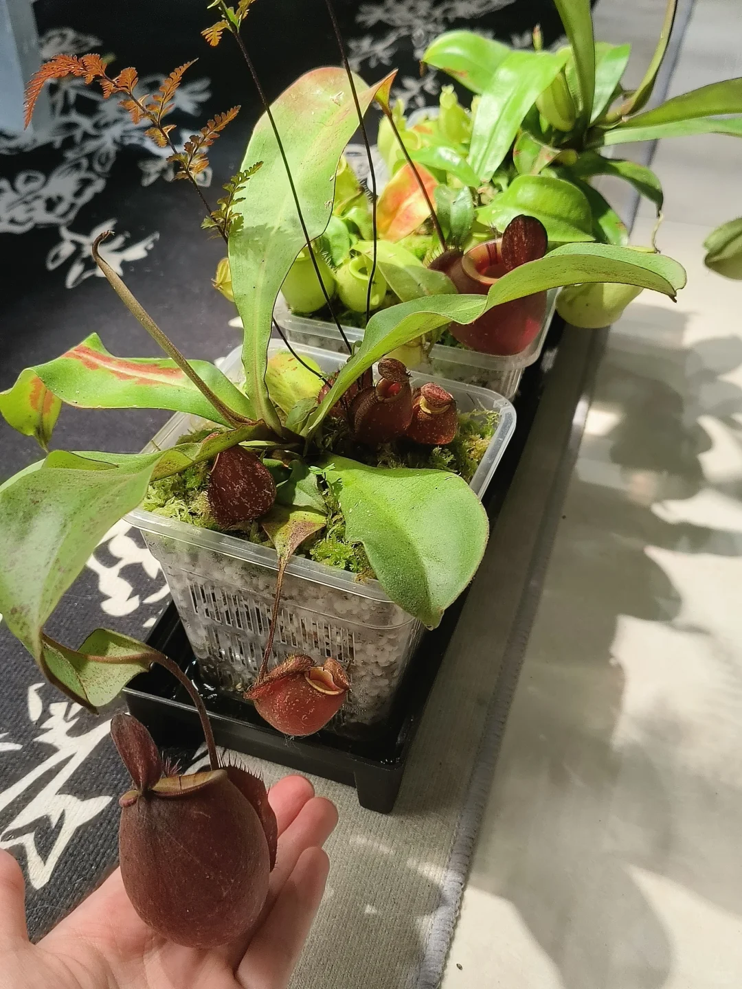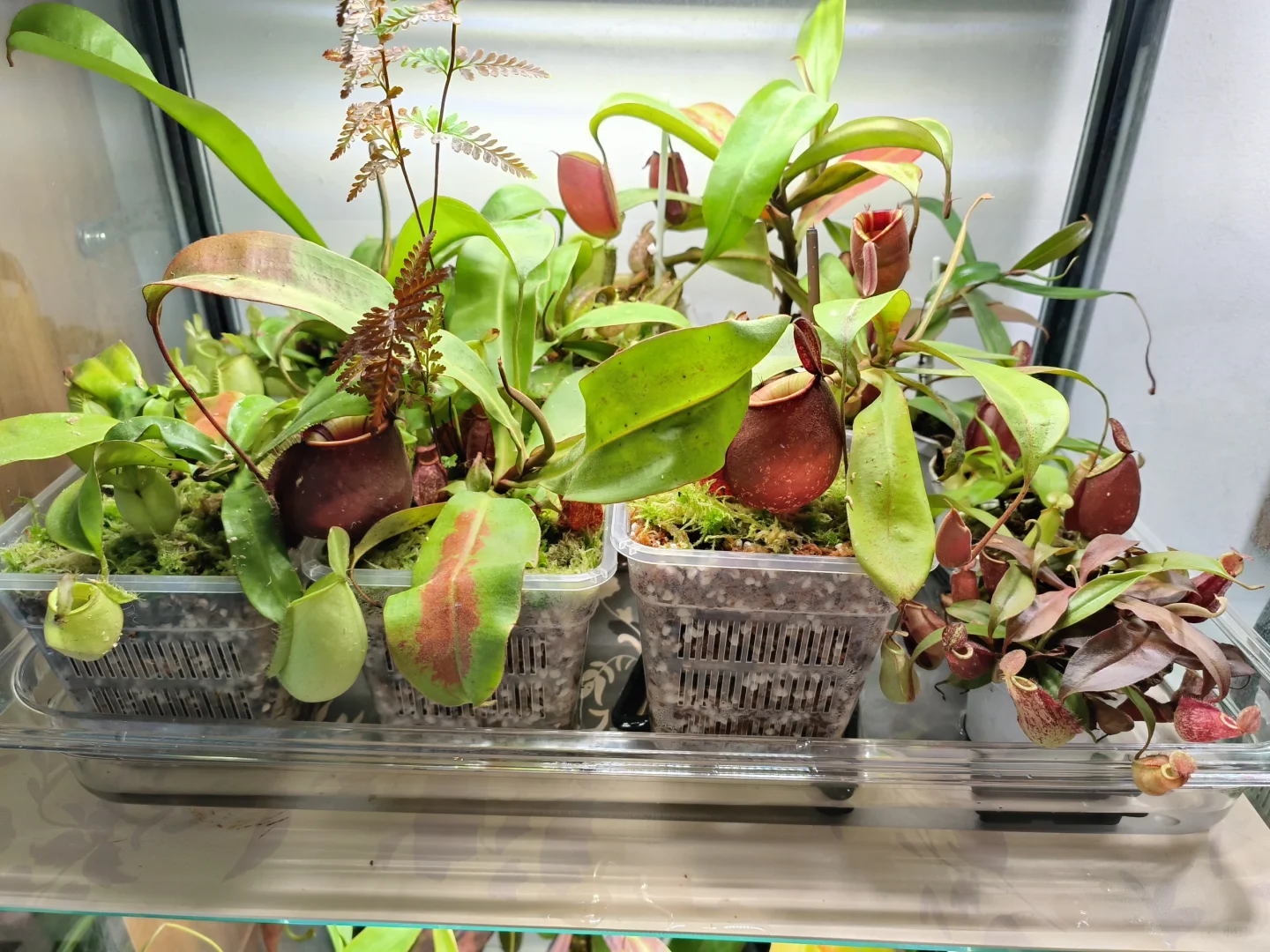 最近给猪们换了盆,颜值高了好多[哇R] 室内开空调养猪,花房分了三层[自拍R] 第一层各种苹果猪交种的小苗矮矮的很茂盛顶层的温度也比较高[偷笑R] 第二层比较多的也是大盆的苹果交种还有其他绿笼子猪[飞吻R] 第三层还有坑位,温度最合适大概24/25度,猪买的都是维奇交种,空的地方打算买小太阳土瓶来填满[派对R]