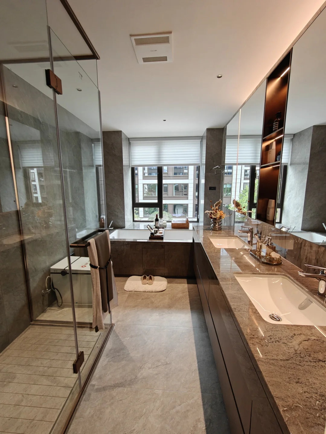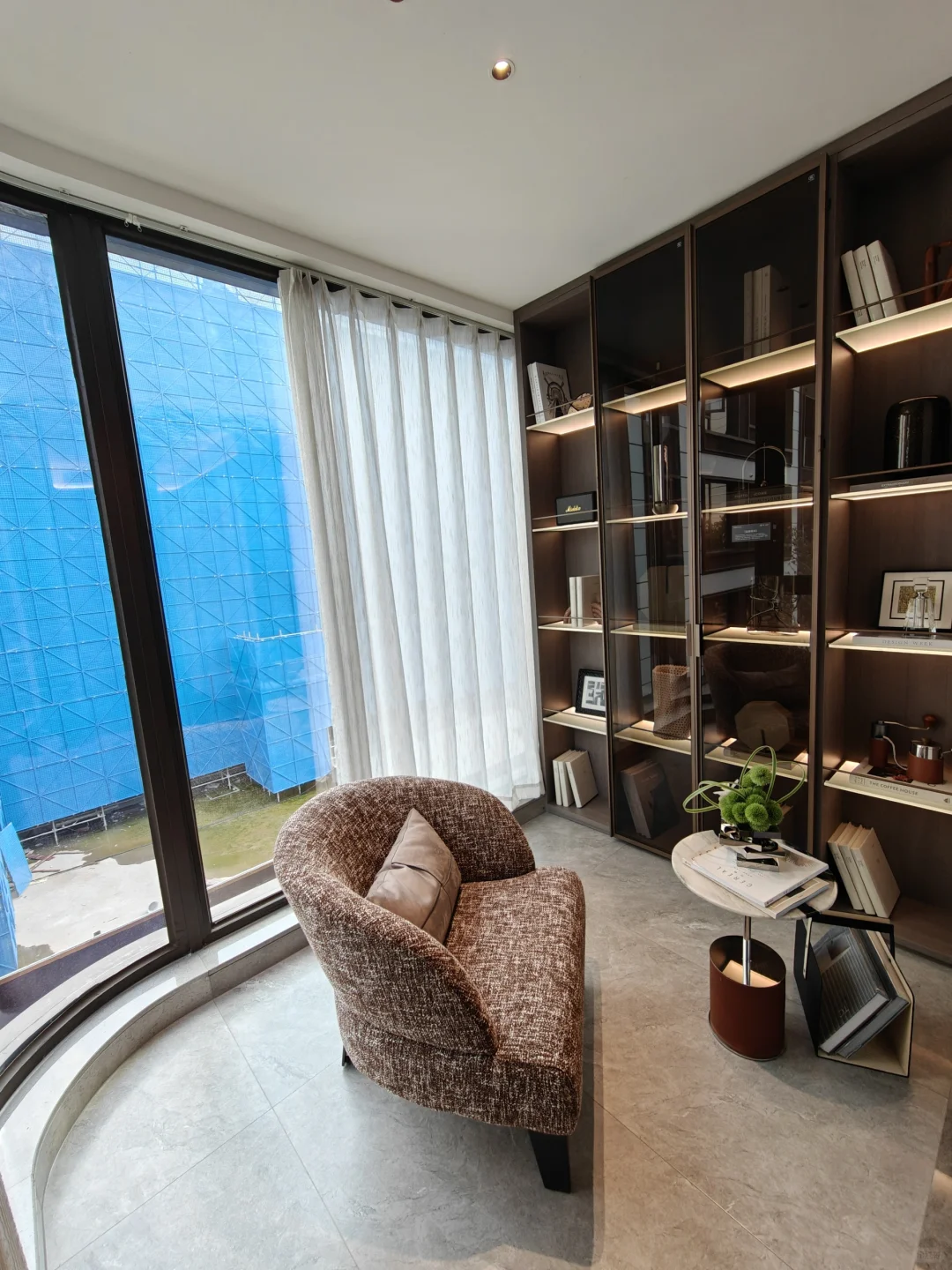 立面均采用大面积定制玻璃,结合金属板、奢石,塑造多层次的灵动弧线造型,将时间的沉淀和韵味融入建筑整体。与白鹭湾湿地公园融为一体,温润儒雅久经传承。