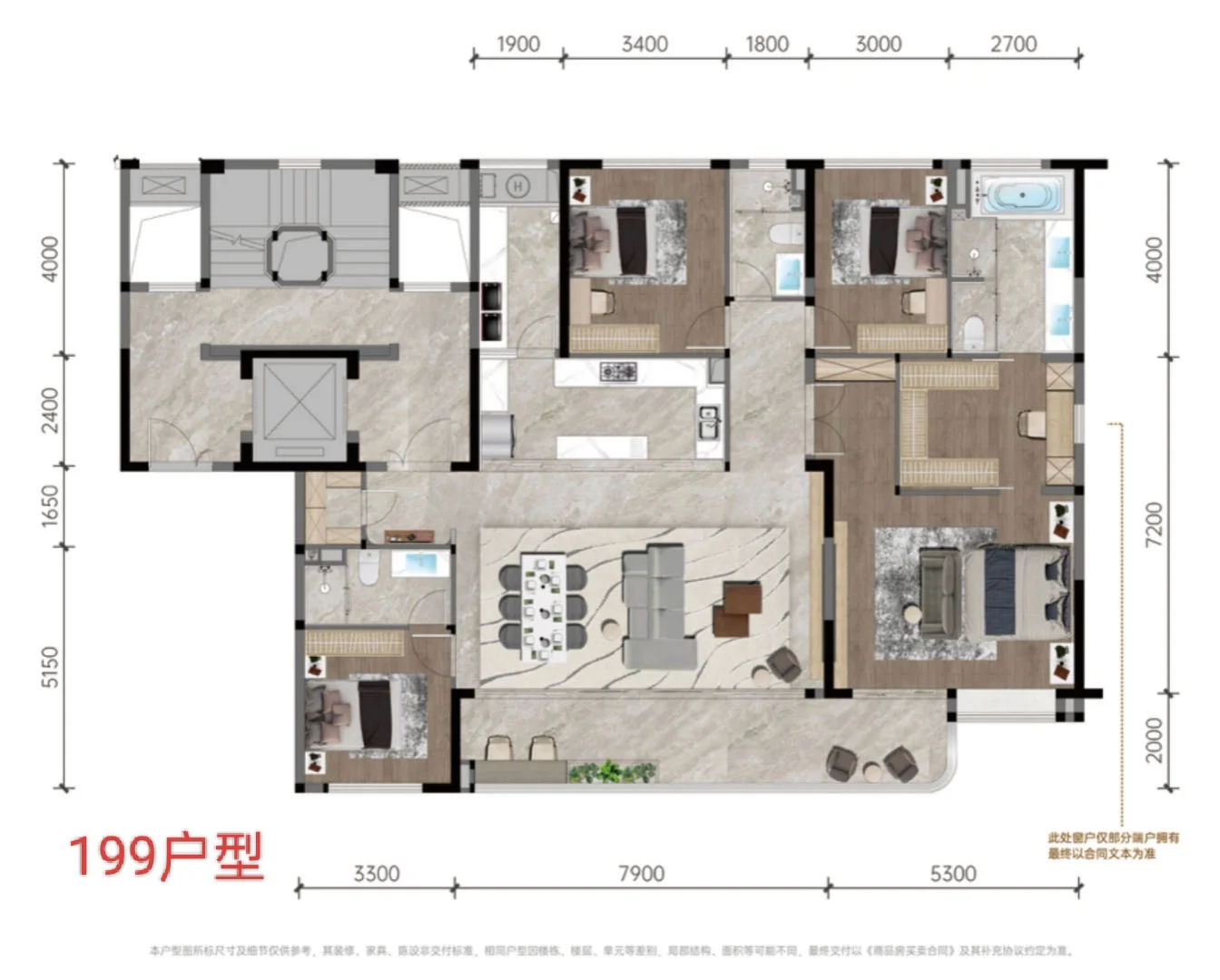 199㎡户型:一体化IMAX设计、超10米巨幕阳台、近60㎡女王主卧套房、主卧阳台独立天地