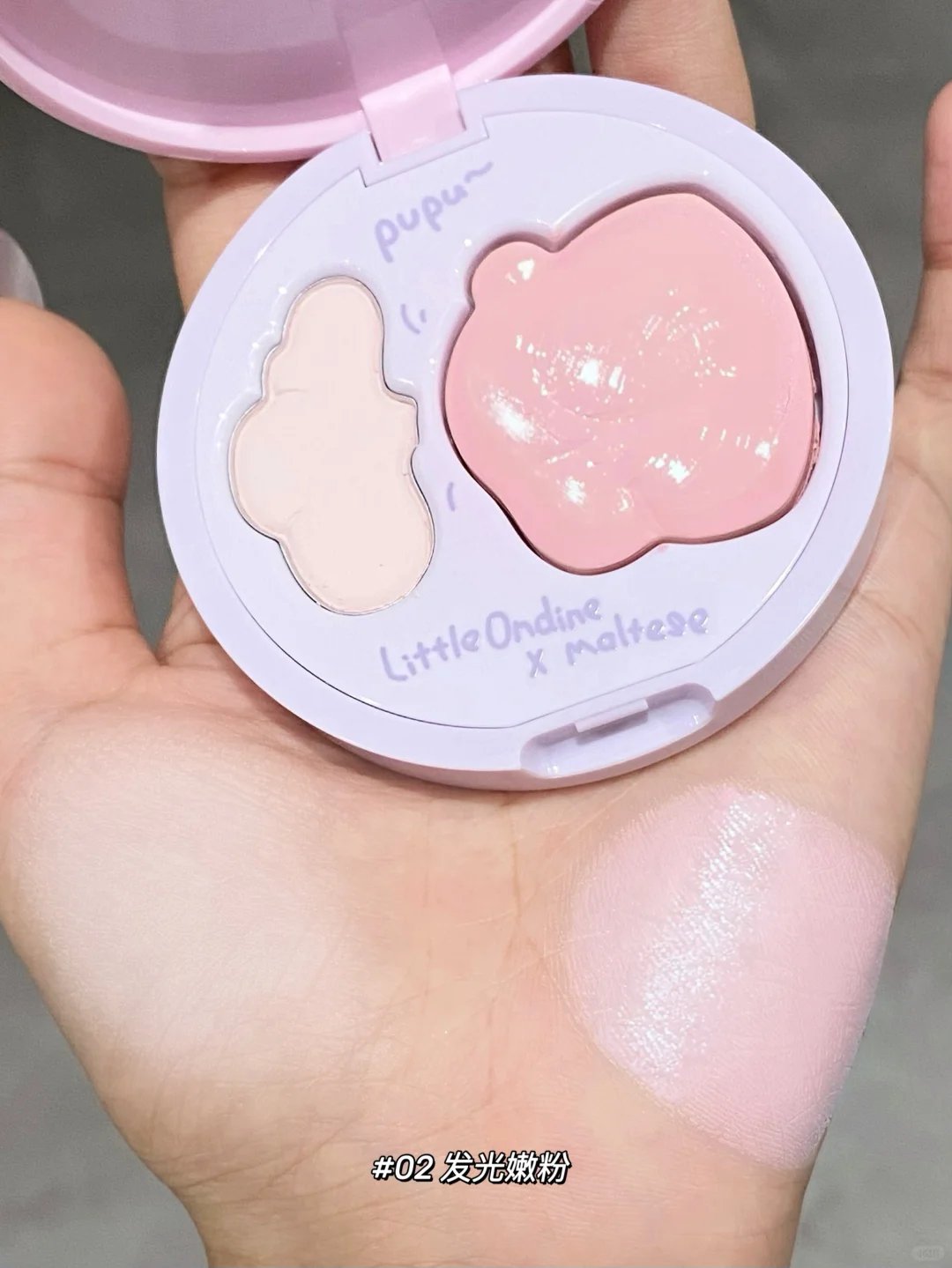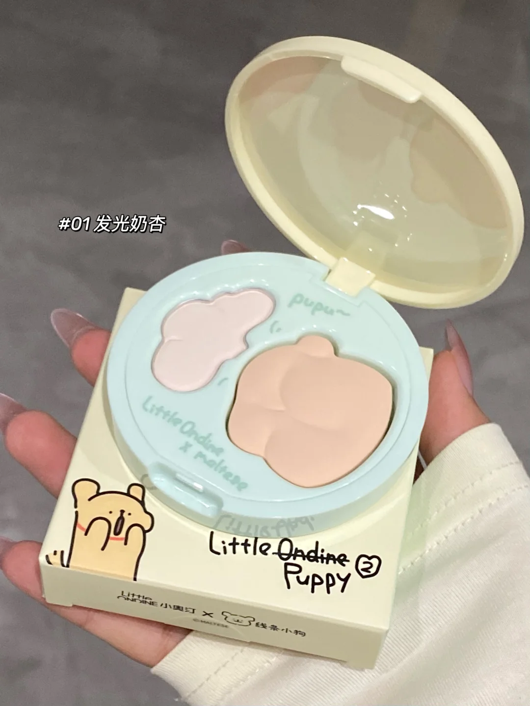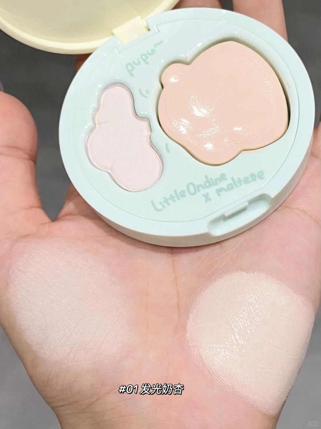 小奥汀线条小狗双拼高光! 会发光的小狗屁屁也太可爱了叭! 都有点不舍的摸哈哈哈 是哑光定妆粉+高光膏的设计 先用高光膏打底再用定妆粉定妆 双倍提亮更持久! 一共两个色号 黄皮白皮都有的选 不用激活一摸就化! 奶霜质地上脸真的好服帖! 01 发光奶杏 米杏色高光 自然提亮凹陷 全肤色适配 02 发光嫩粉 饱满嫩粉色 而且粉色定妆粉不会盖住高光膏的粉嫩! 面中提亮嘎嘎减牛 不需要手法就能和底妆融合得很好 还顺便把腮红的工作抢了哈哈哈 遮瑕提亮腮红三合一 真的超实用!