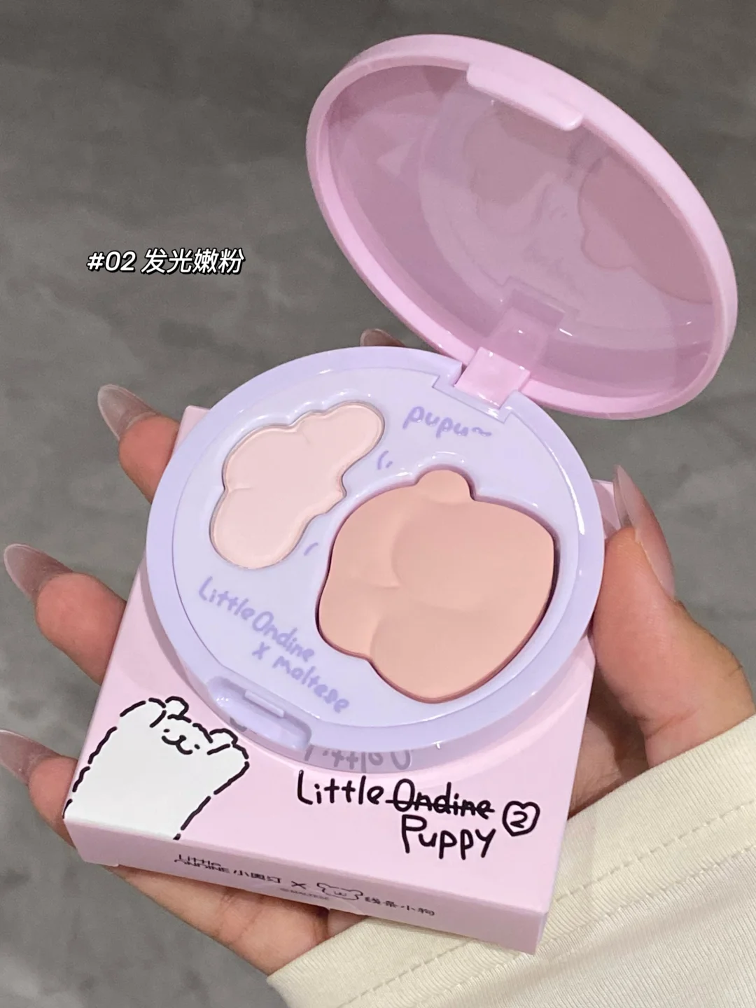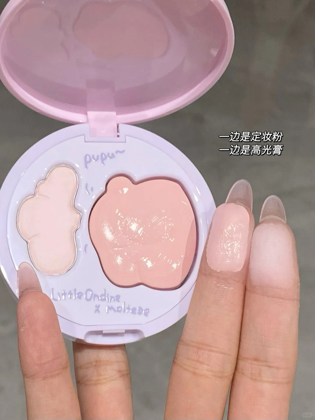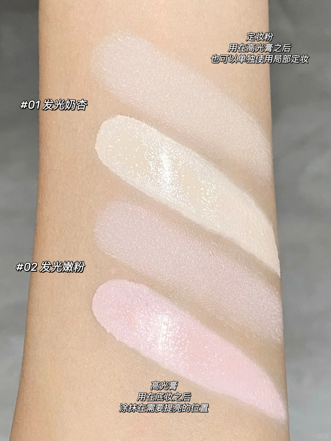 小奥汀线条小狗双拼高光! 会发光的小狗屁屁也太可爱了叭! 都有点不舍的摸哈哈哈 是哑光定妆粉+高光膏的设计 先用高光膏打底再用定妆粉定妆 双倍提亮更持久! 一共两个色号 黄皮白皮都有的选 不用激活一摸就化! 奶霜质地上脸真的好服帖! 01 发光奶杏 米杏色高光 自然提亮凹陷 全肤色适配 02 发光嫩粉 饱满嫩粉色 而且粉色定妆粉不会盖住高光膏的粉嫩! 面中提亮嘎嘎减牛 不需要手法就能和底妆融合得很好 还顺便把腮红的工作抢了哈哈哈 遮瑕提亮腮红三合一 真的超实用!