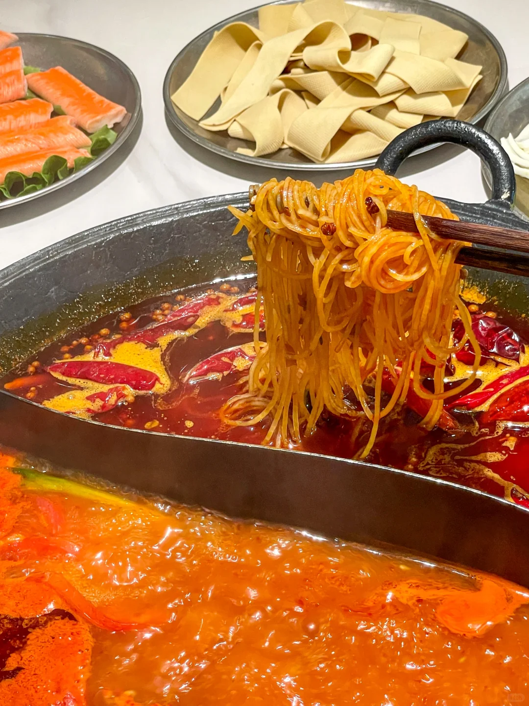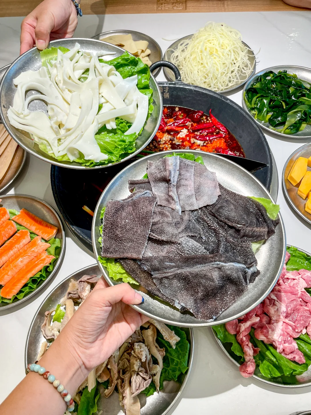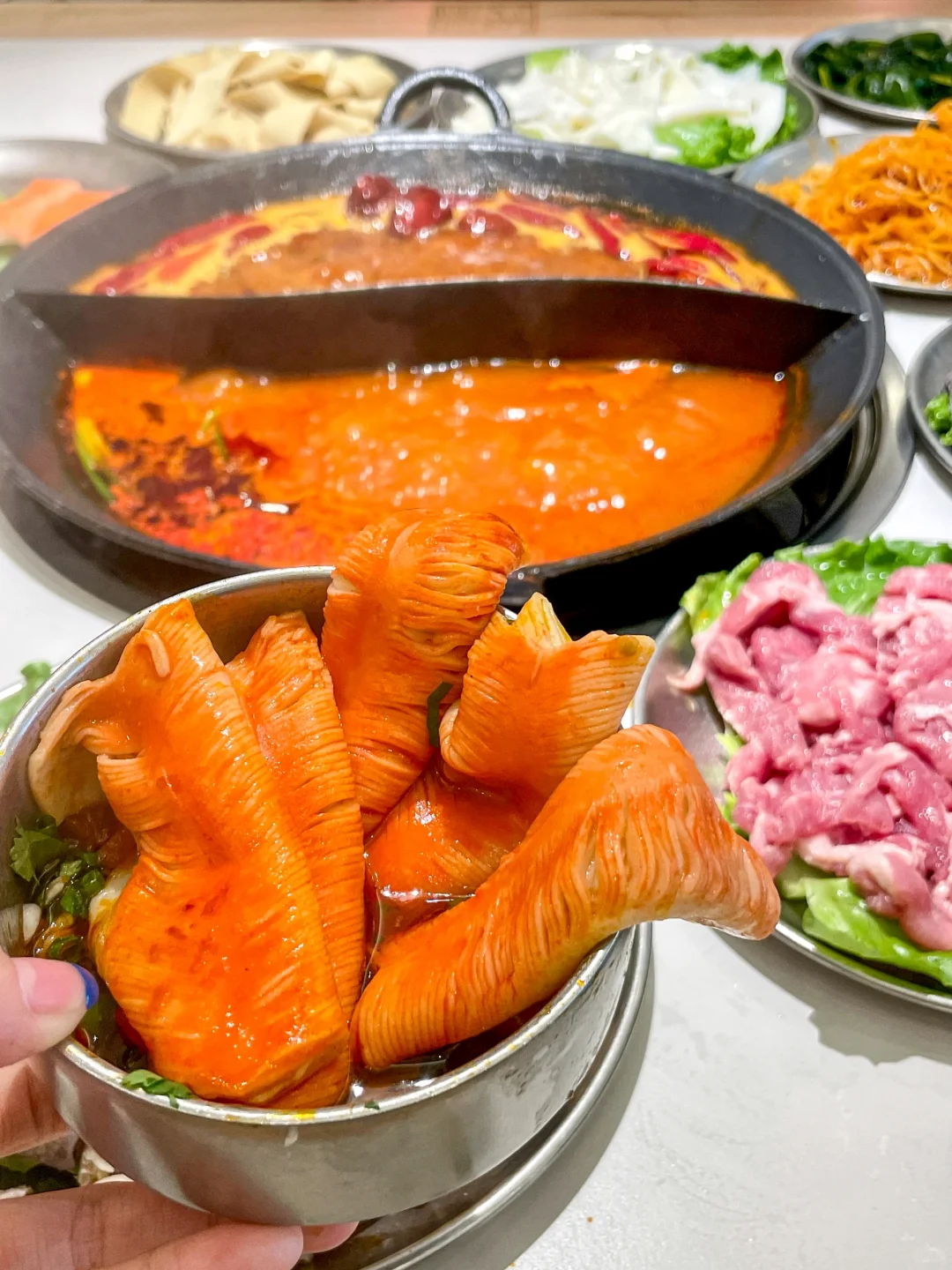 晚上跟朋友来的 鲜毛肚,九秒土豆丝,鸭血... 好吃的太多了,满足~