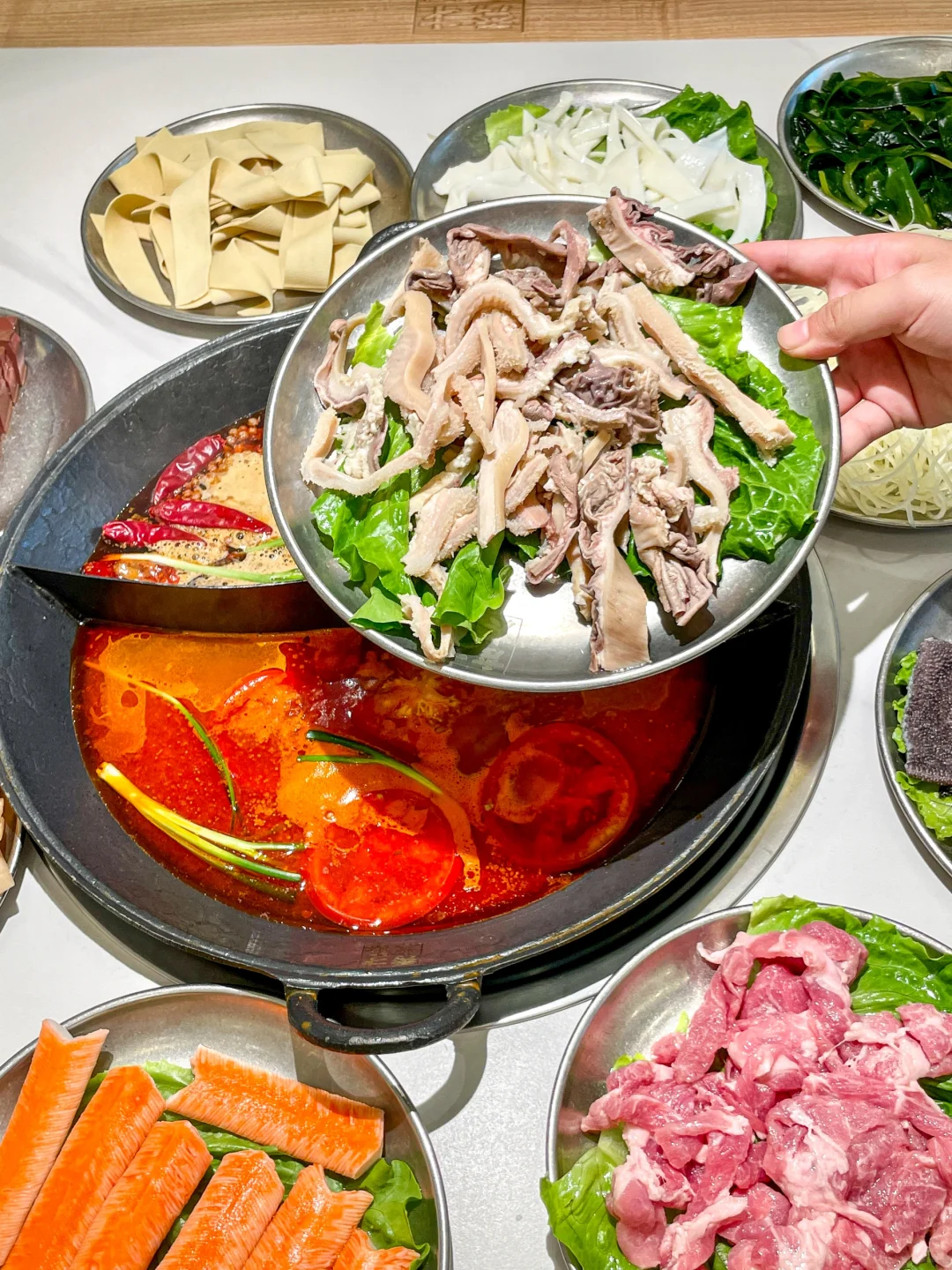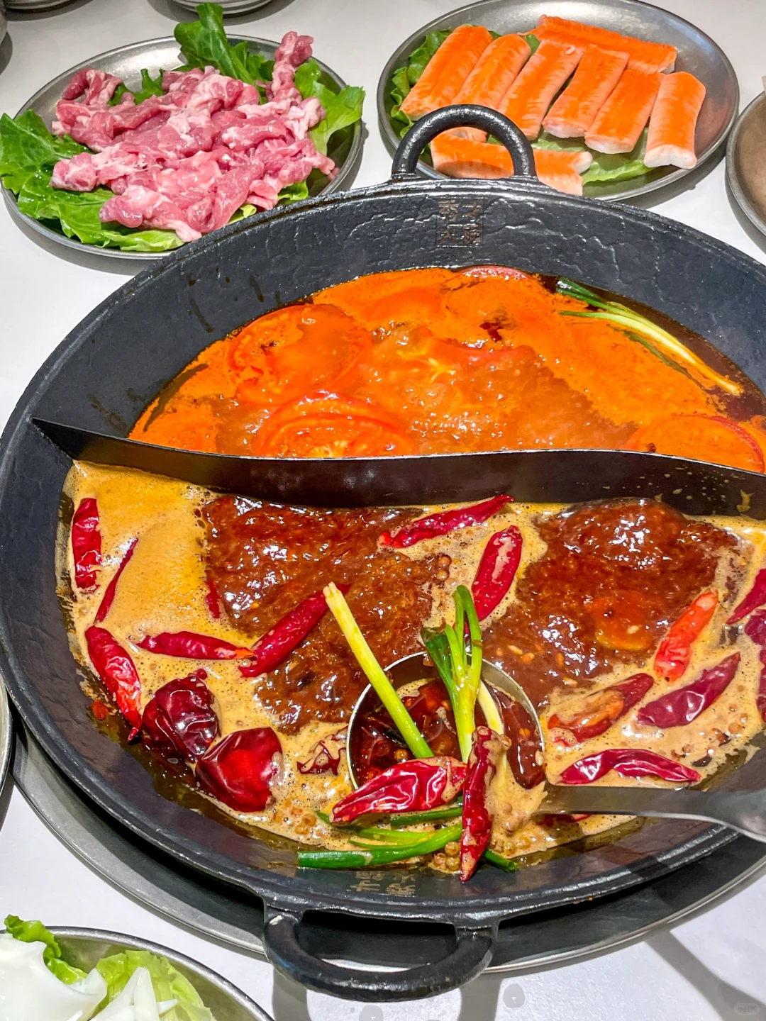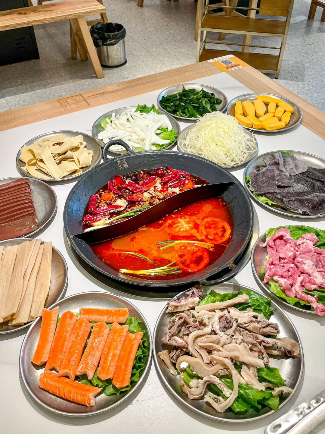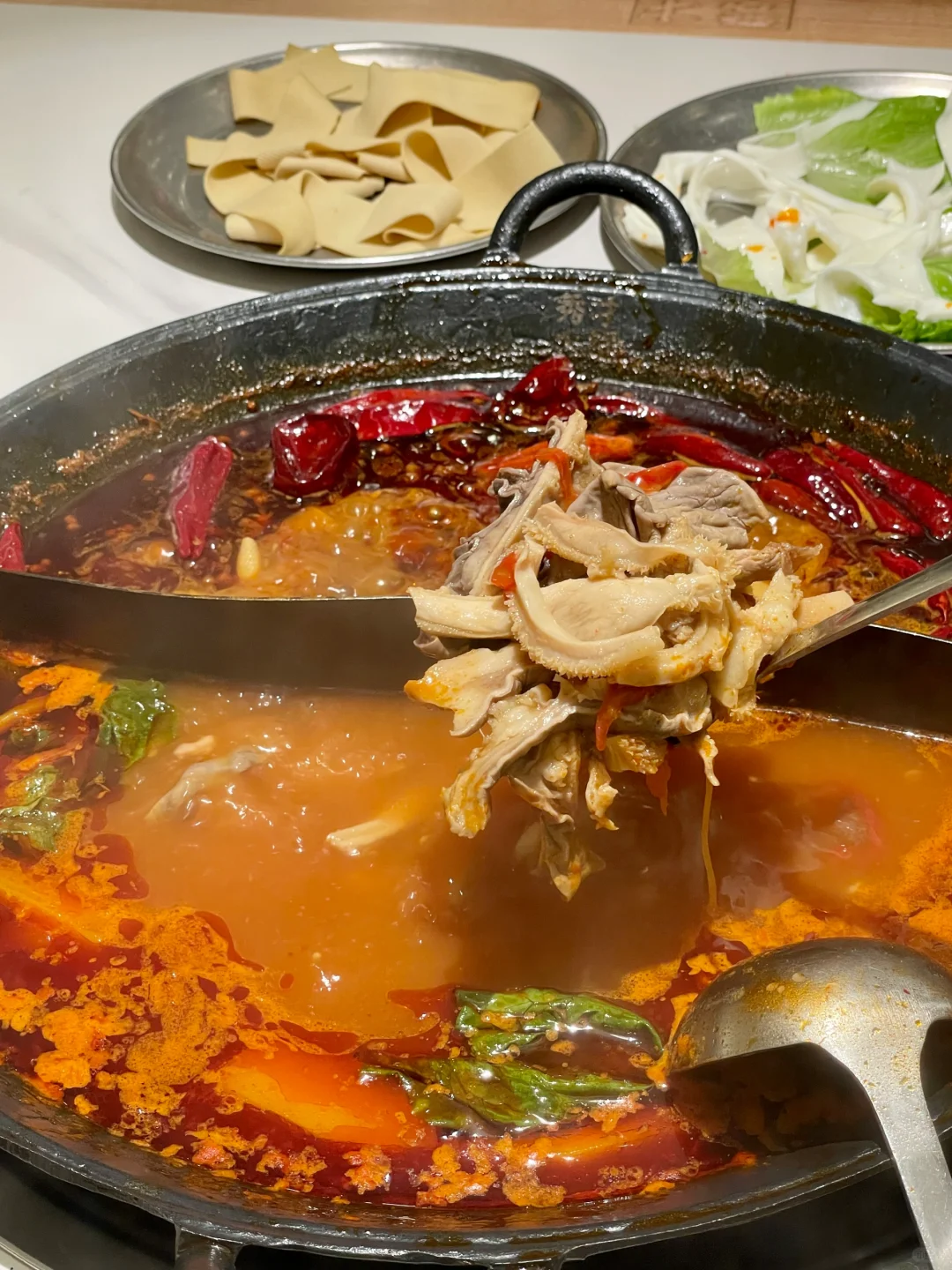 晚上跟朋友来的 鲜毛肚,九秒土豆丝,鸭血... 好吃的太多了,满足~