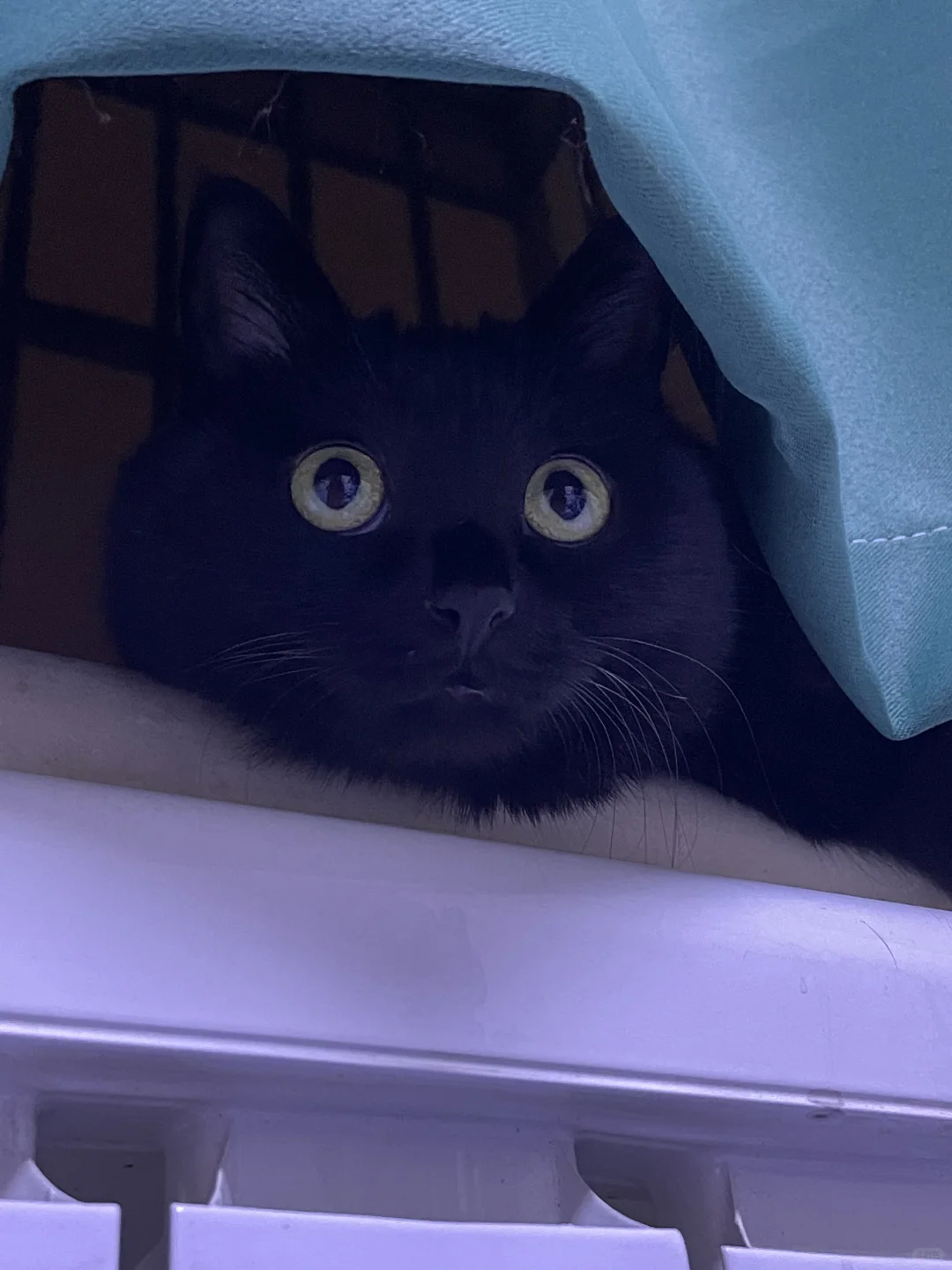 窗帘里突然长出一颗猫猫头🐱