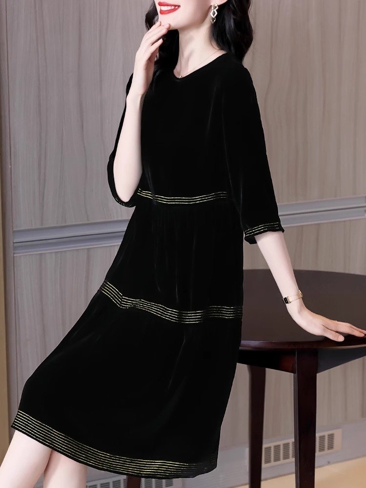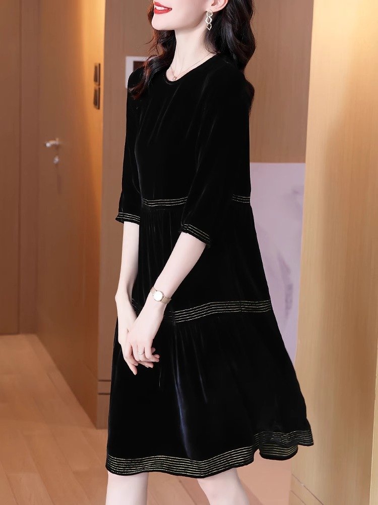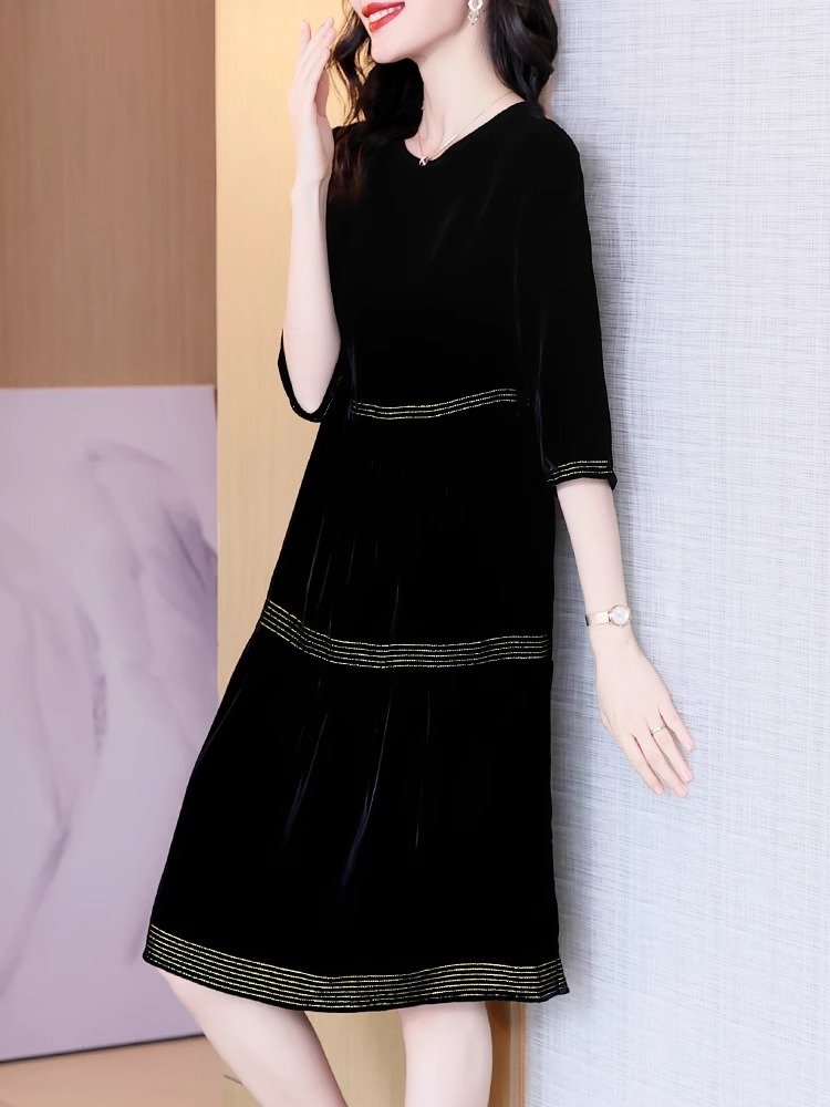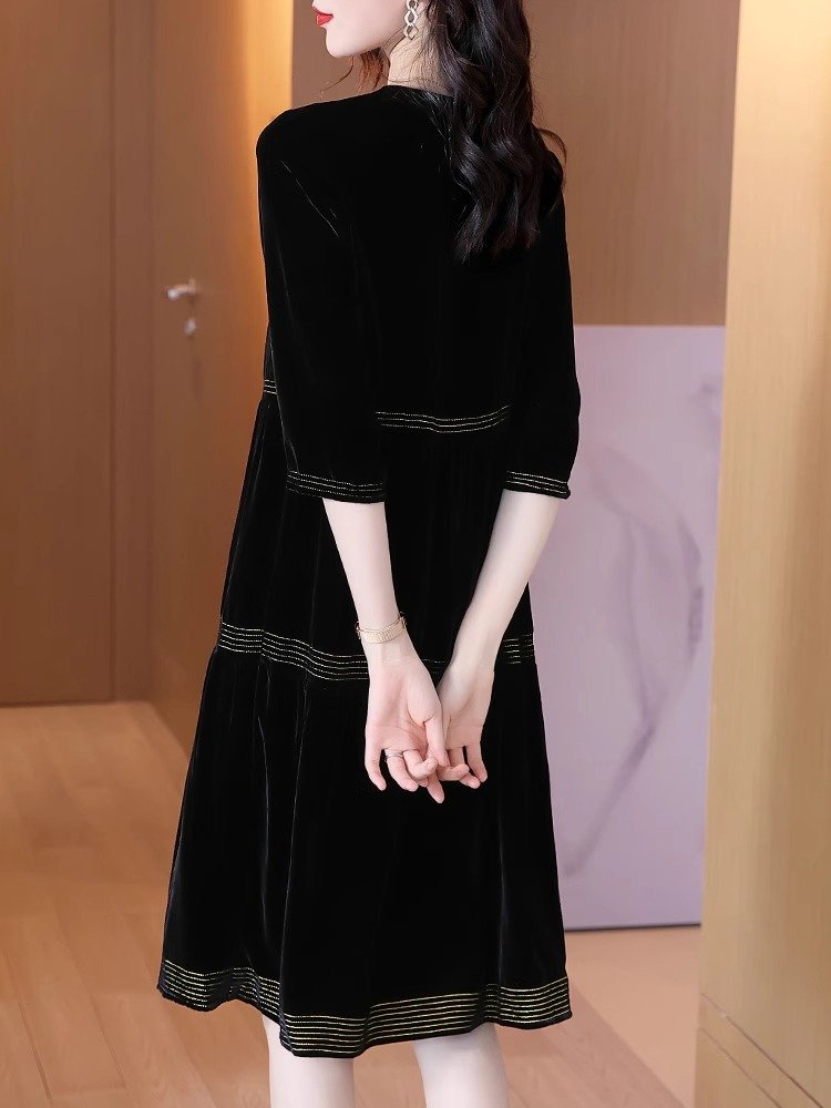金丝绒顺滑,轻盈如羽,秋日内敛奢华之选,绽放女性温婉光彩。连衣裙金丝绒连衣裙