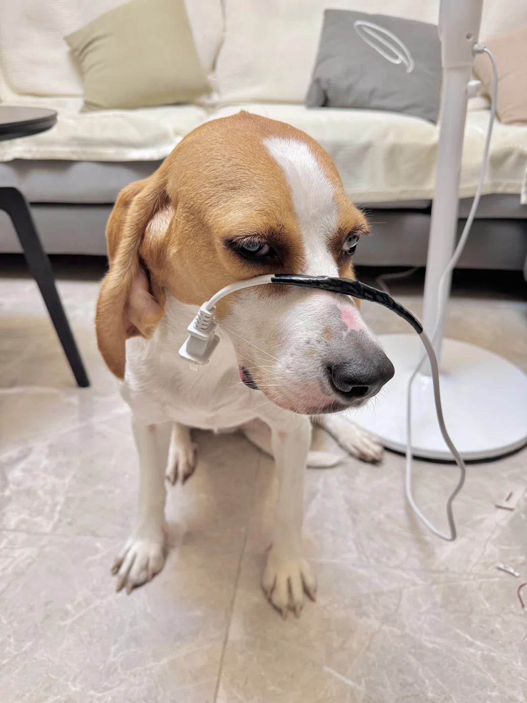 不禁夸,昨天才夸它乖,今天就把电源线咬了