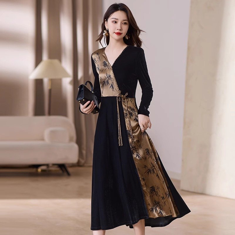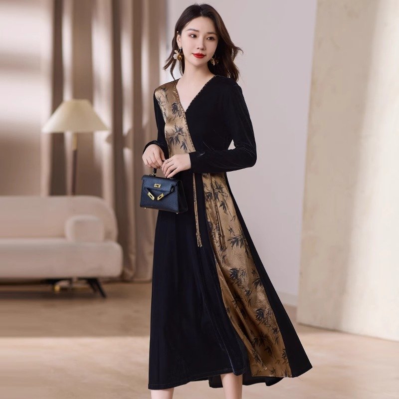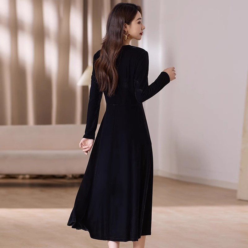 金丝绒顺滑,轻盈如羽,秋日内敛奢华之选,绽放女性温婉光彩。连衣裙金丝绒连衣裙