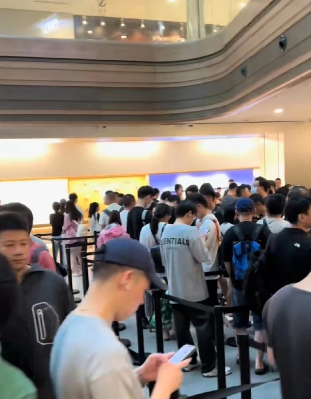 iPhone 16系列首日开售场面非常火爆,尽管苹果体验店外面下着大雨,但仍然挡不住大家的热情,顾客自觉排起了长队,依次购买心仪iPhone。
