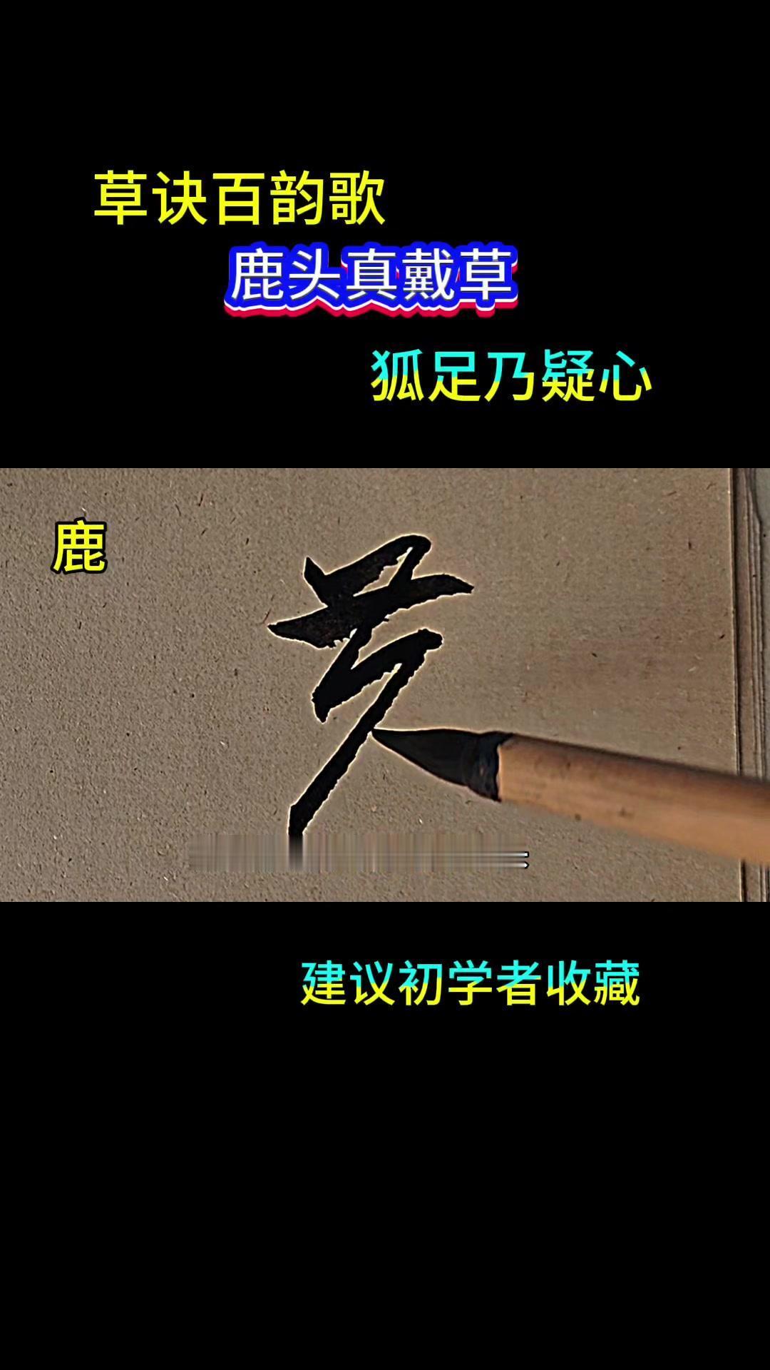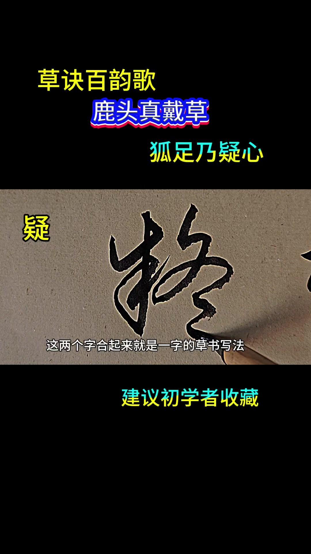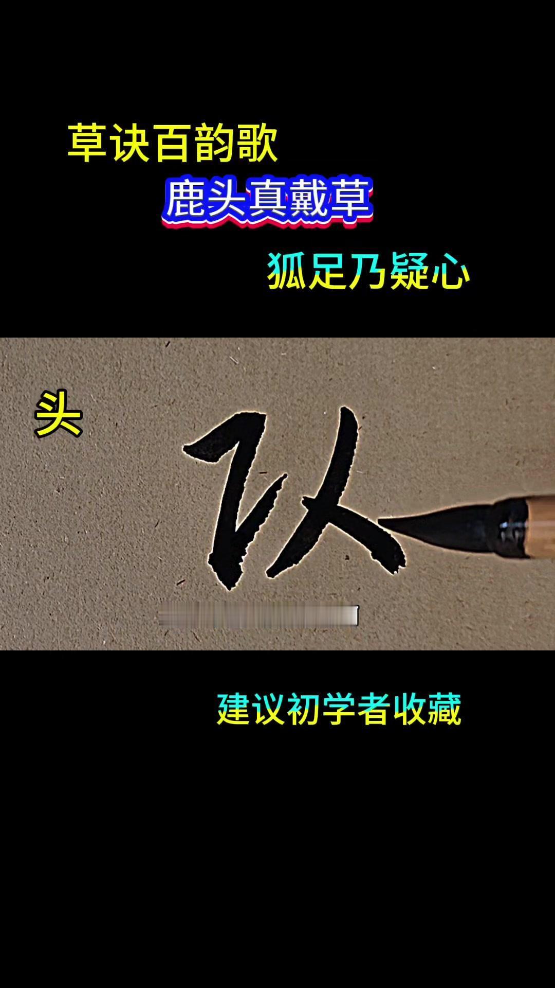 🎈鹿头真戴草,狐足乃一心 🎈鹿字 1️⃣鹿字是广字盘。 2️⃣鹿字的草书写法是草字头。 3️⃣鹿字像獾字的草书写法。 🎈头字 1️⃣头字的左边是繁体字。 2️⃣头字的右边是竖画跟点画。 3️⃣竖画写成一撇。 🎈真字 1️⃣真字有撇画,短撇。 2️⃣真字有下边的两个点。 🎈代字 1️⃣代字是革字。 2️⃣代字的下边是田跟共字。 3️⃣代字的草书写法是写成心字的形状。 🎈狐字 1️⃣狐字的下边是竹字。 2️⃣狐字的下边是代表下边。 3️⃣狐字的足是心字的草书写法。 🎈乃怡字 1️⃣乃怡字的下边是点。 2️⃣乃怡字的右边是冬字。 3️⃣乃怡字是两个字合起来就是一字的草书写法。 🎈朱东一 1️⃣朱东一的左边是3个点。 🎈心字 1️⃣心字用3个点来表示。 🎈鹿头真戴草,狐足乃一心 1️⃣重点:主要讲的就是鹿字跟壶字的草书写法。 2️⃣鹿字的上边是一个草字头,壶字的下边是一个心字。 #草书#书法