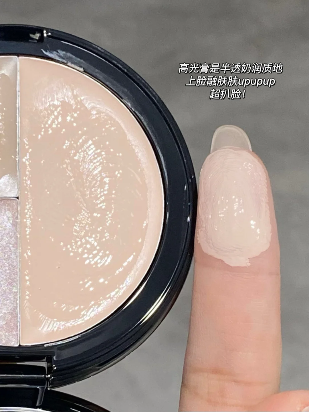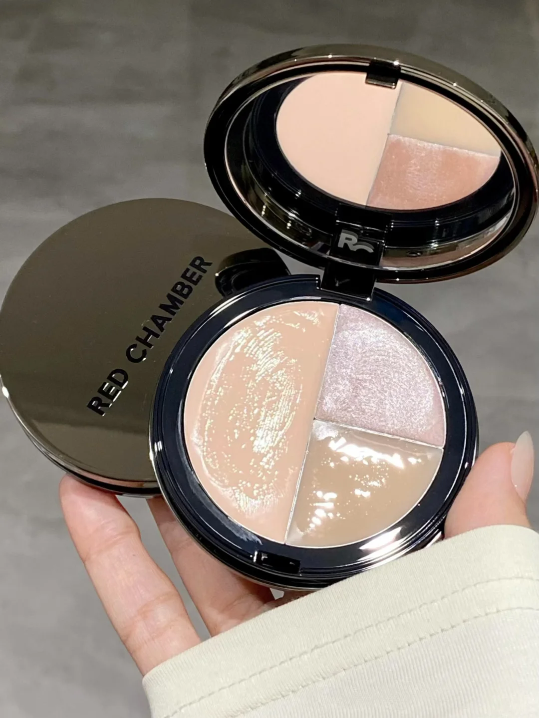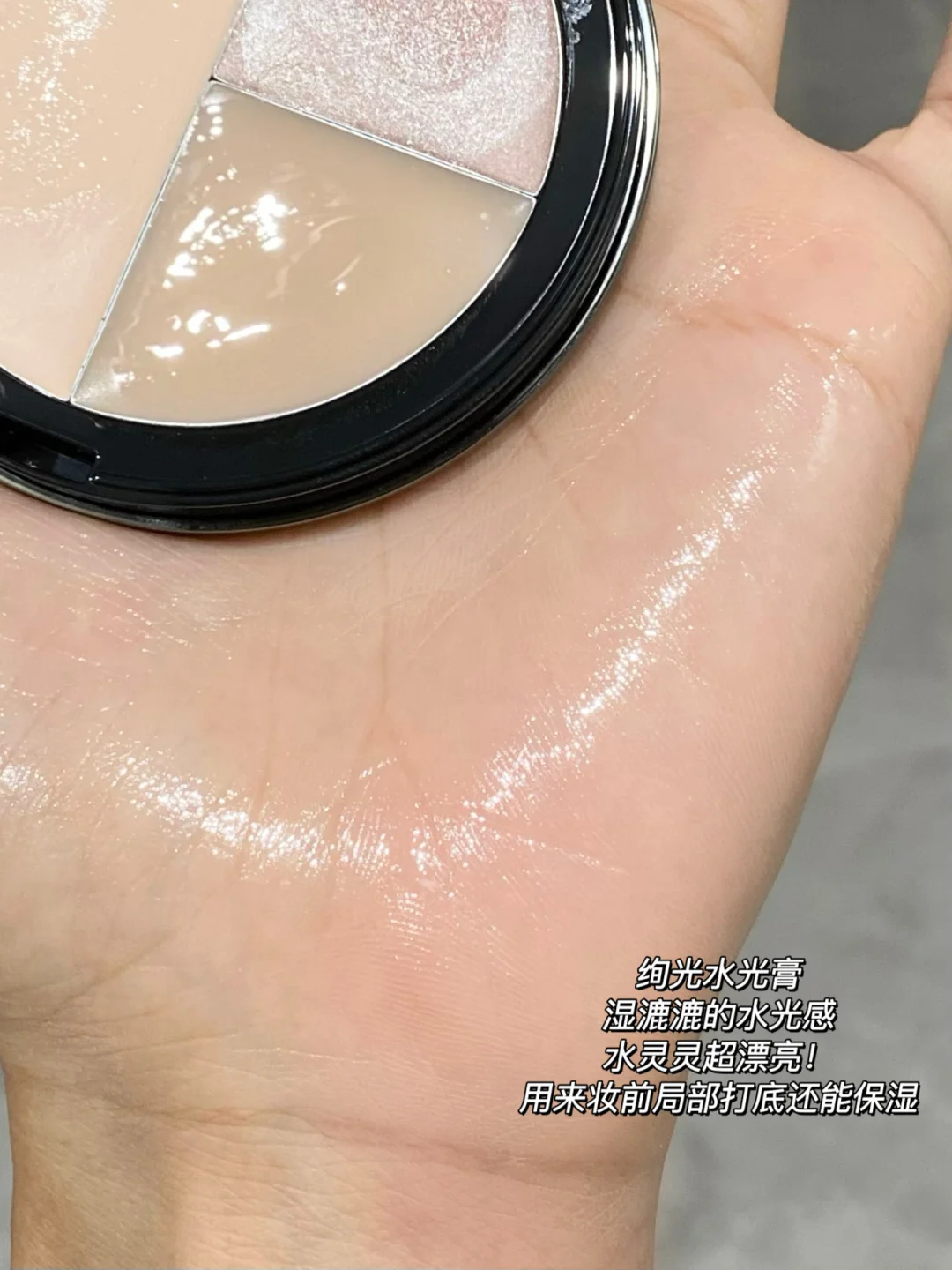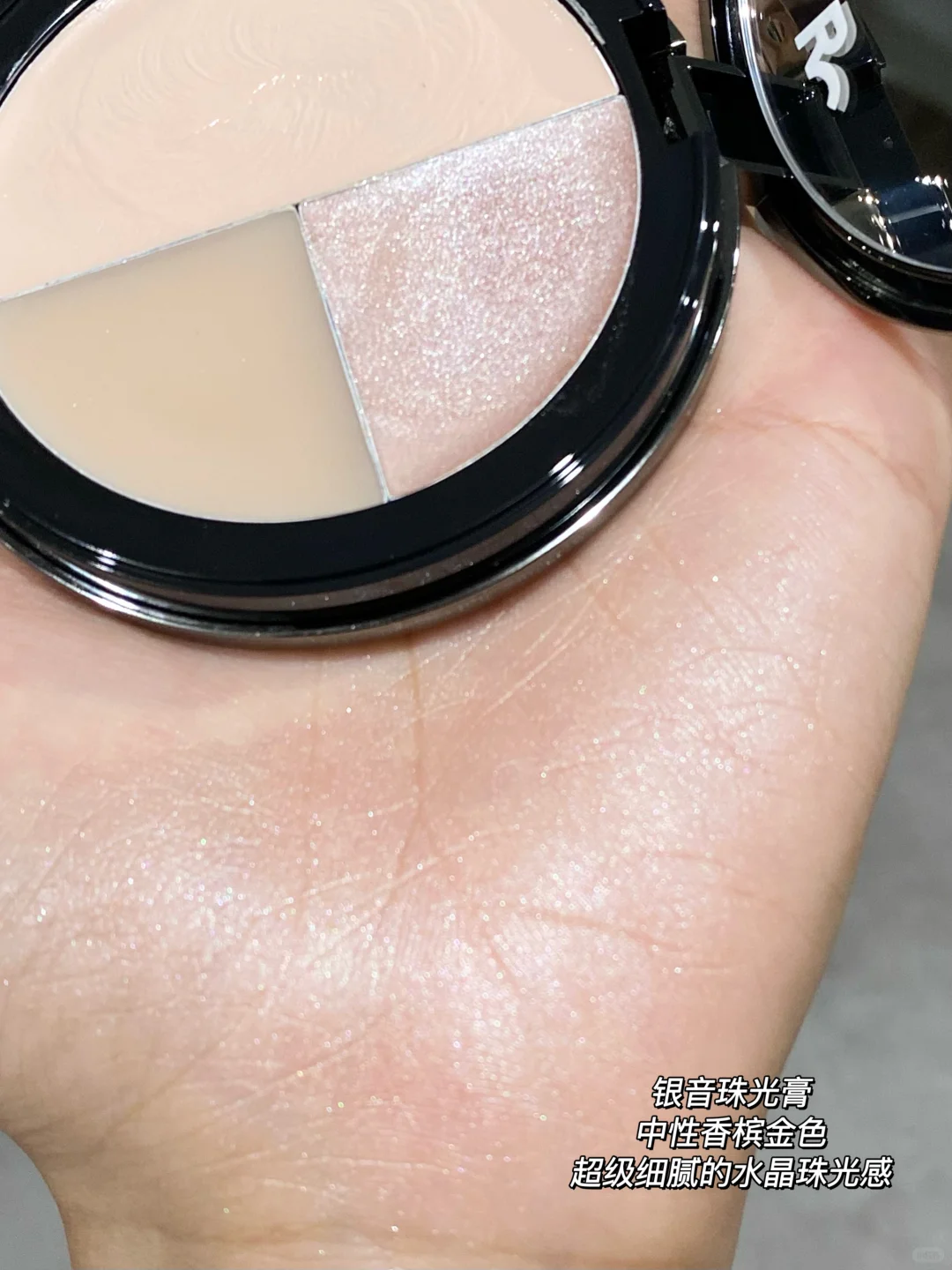 RC你算是把多用这一趴给研究明白了 新品竟然出了多功能高光盘! 一盘直接get三种质地三种妆效,还可自行叠加使用! 简直就是行走的打光盘 ✨高光膏-玉尘 透哑光 润润的半透质地超轻薄融肤! 而且叠加也不会厚重 哪里凹陷涂哪里! ✨珠光膏-银音 柔珠光 中性香槟金 细腻闪耀的细碎珠光感 眼中脸颊锁骨都可以涂! ✨水光膏-绚光 湿感水光 纯透明的湿漉漉水光感真的绝 用来打底或者叠涂都好好看 精致baby肌光泽感!