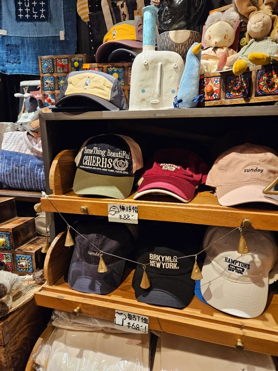 哦对了,书店后面还有个小角落,卖着衣服、帽子和包,虽然种类不多,但每件都很有特色,不是那种满大街都是的款式。