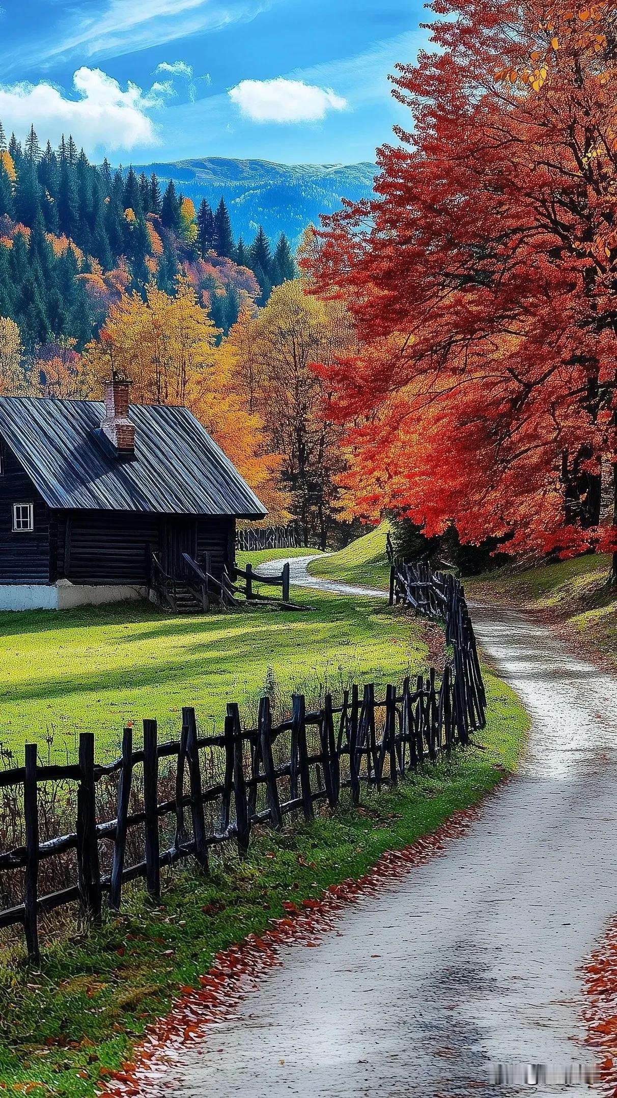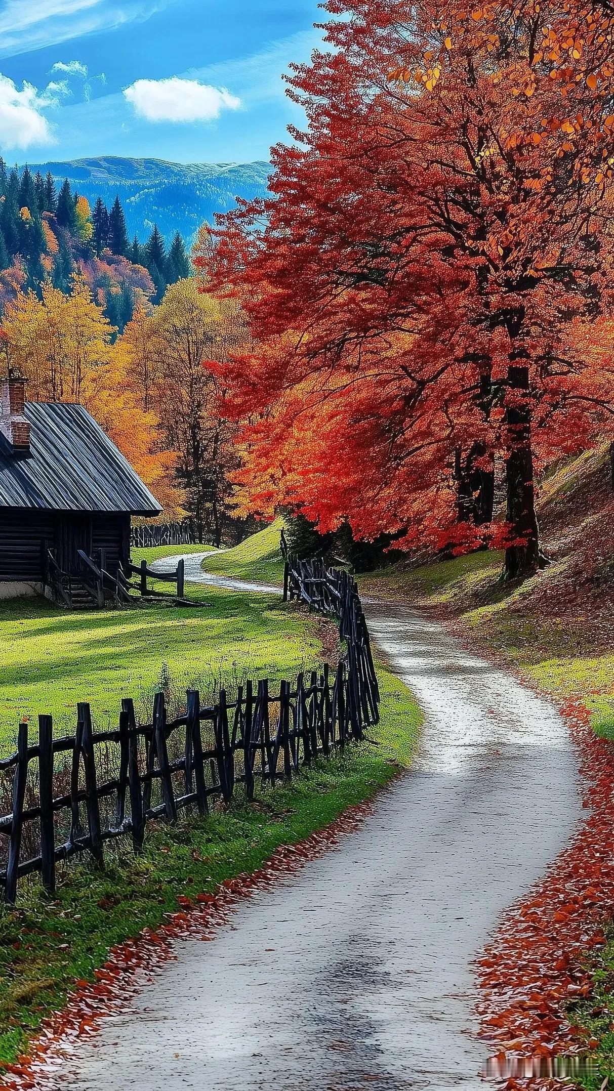 秋风吹叶落,木篱小舍间。#醉美秋天季# #一张图描写秋天# #深秋了天凉了# #向往的秋天来了# #秋日团团转季# #一片片枫叶飘落#