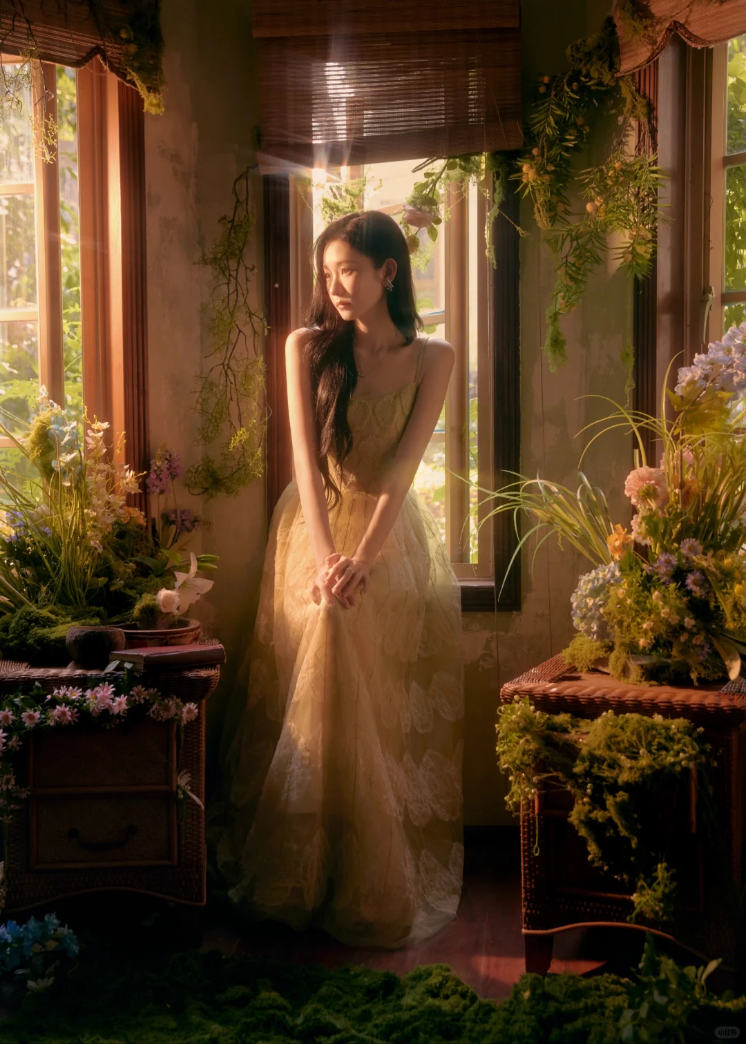 视觉中国拍的Lisa穿繁花紧身长裙照