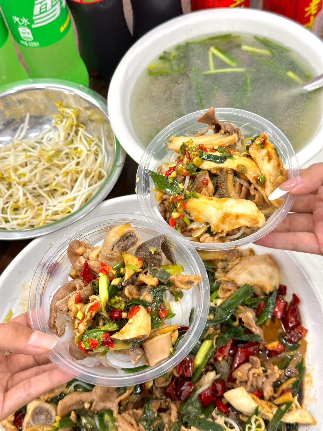 ✅和朋友人均二三十吃饱饱!各种食材丰富又新鲜一份猪牛混杂,一份韭菜牛红汤🥣 一份炒时蔬 🥬 自助的香米饭、玉米粥 、绿豆芽、米粉、茶水…… 性价比满满!